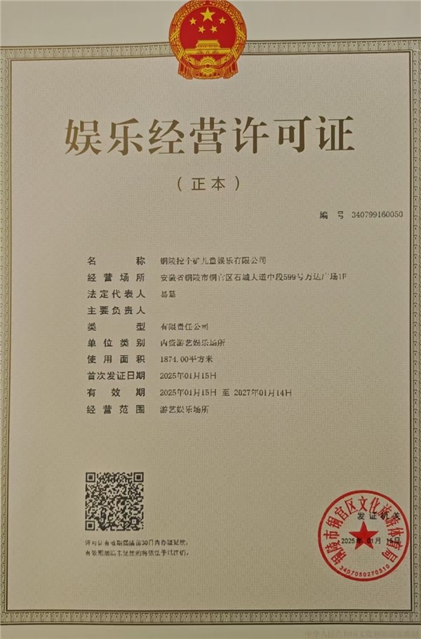 铜陵挖个矿儿童娱乐有限公司(新设)-铜官区人民政府