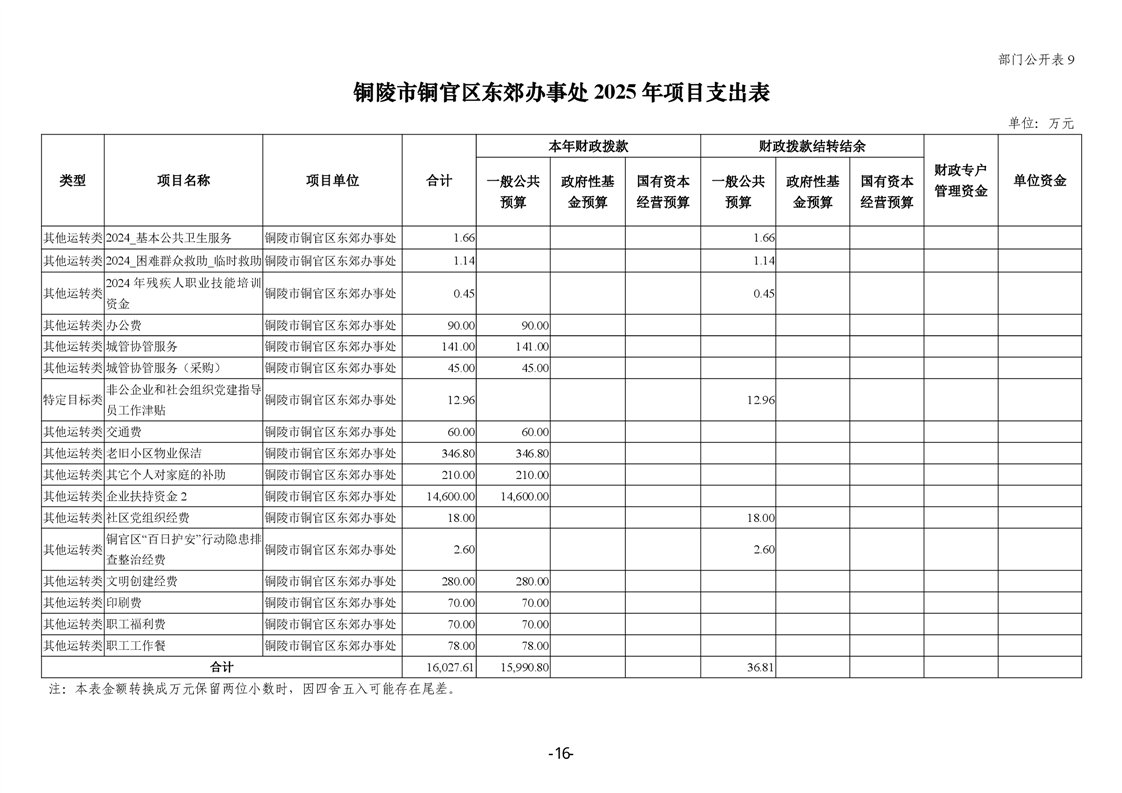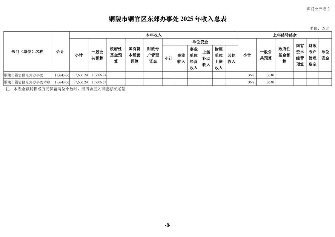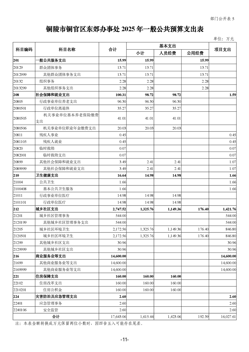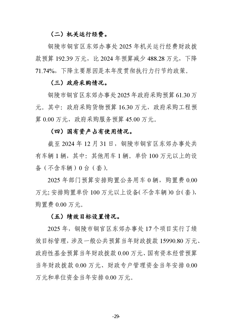 铜陵市铜官区东郊办事处2025年部门预算公开-铜官区人民政府