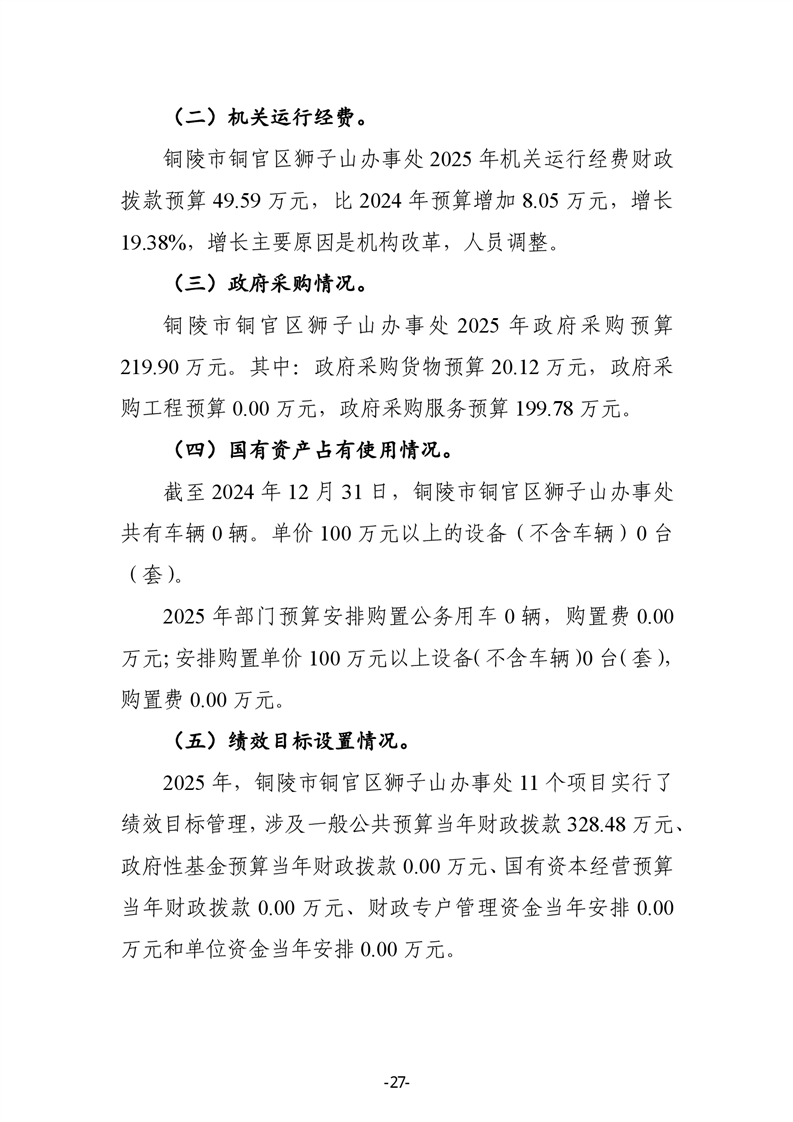 铜陵市铜官区狮子山办事处2025年部门预算公开-铜官区人民政府