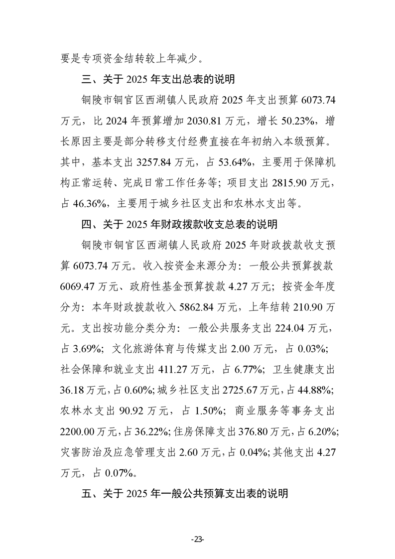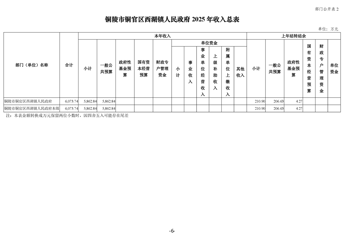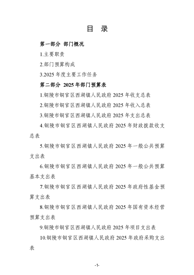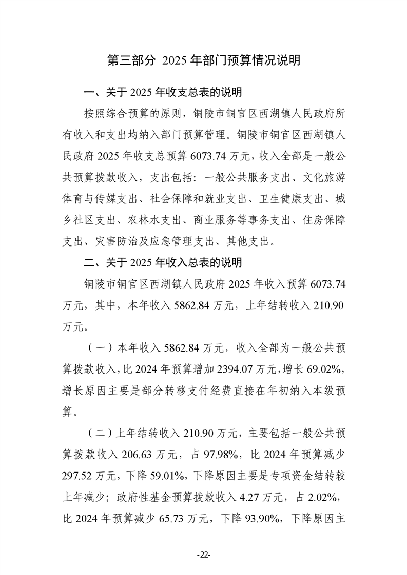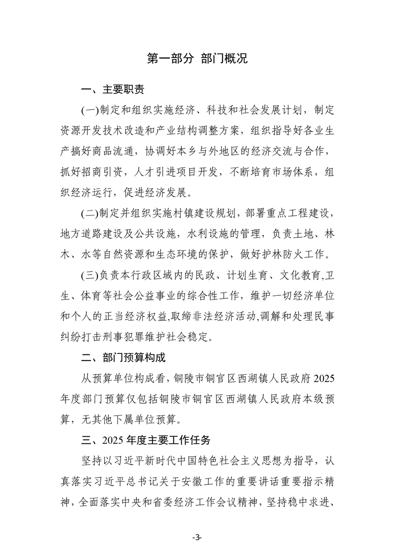 铜陵市铜官区西湖镇人民政府2025年部门预算-铜官区人民政府