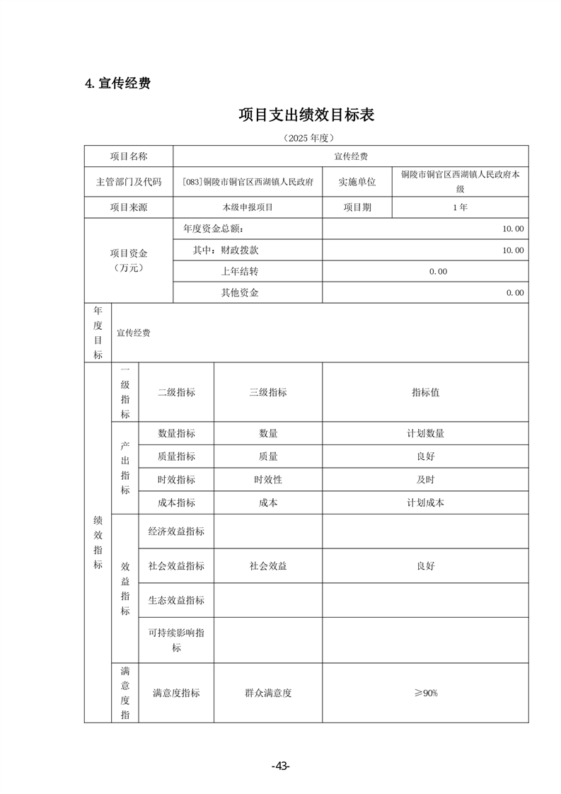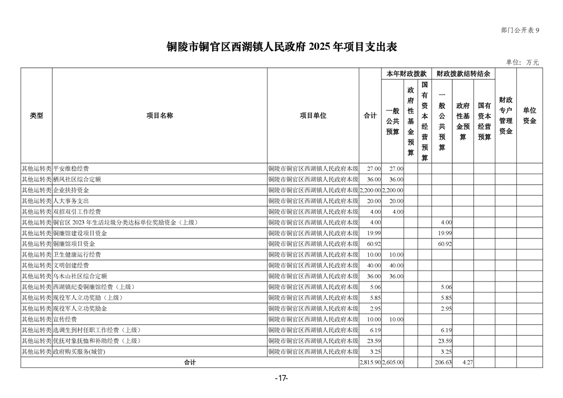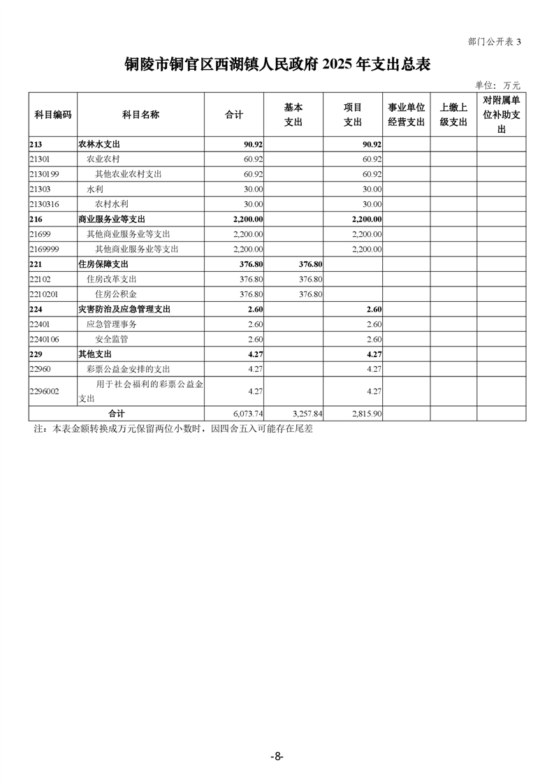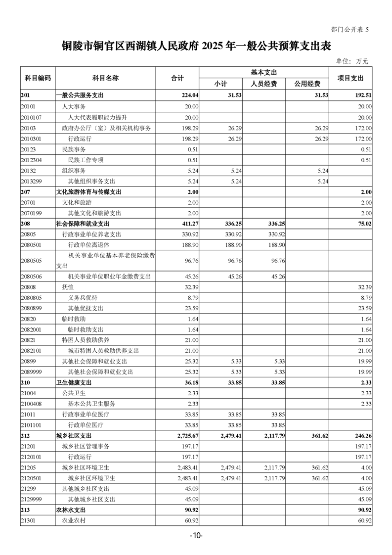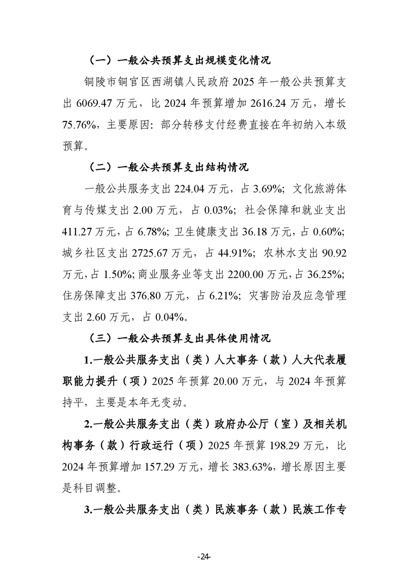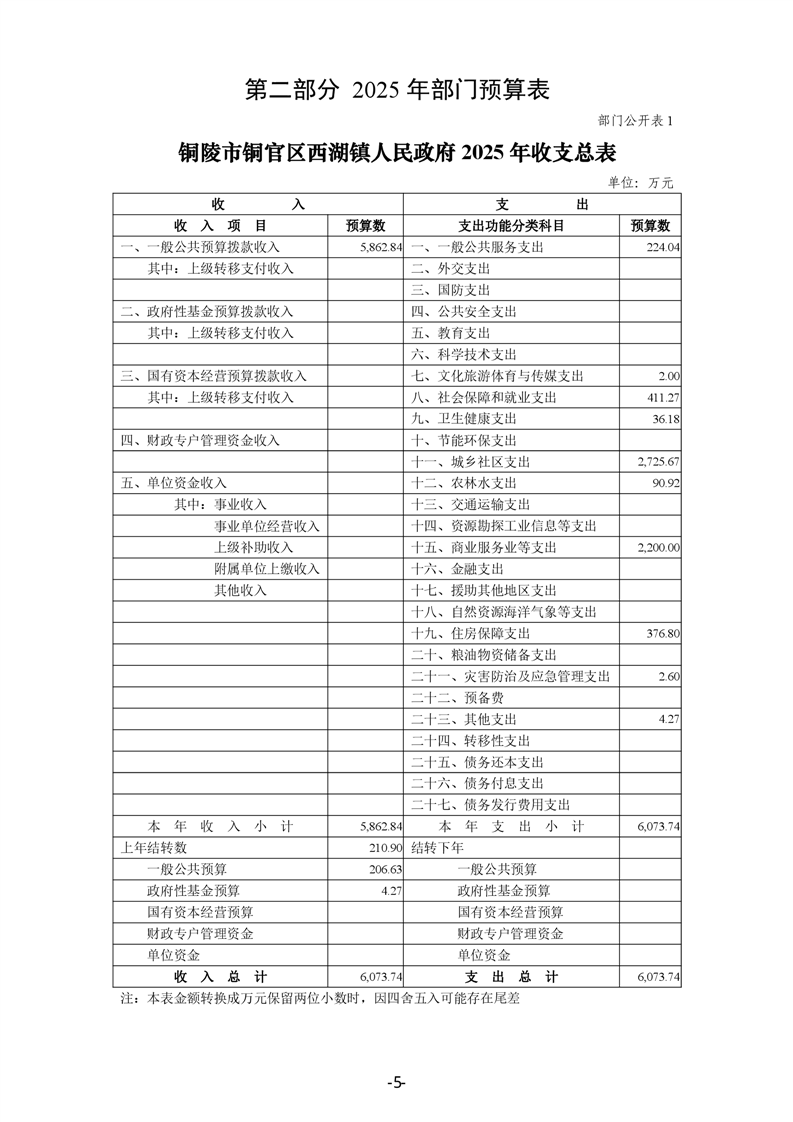 铜陵市铜官区西湖镇人民政府2025年部门预算-铜官区人民政府