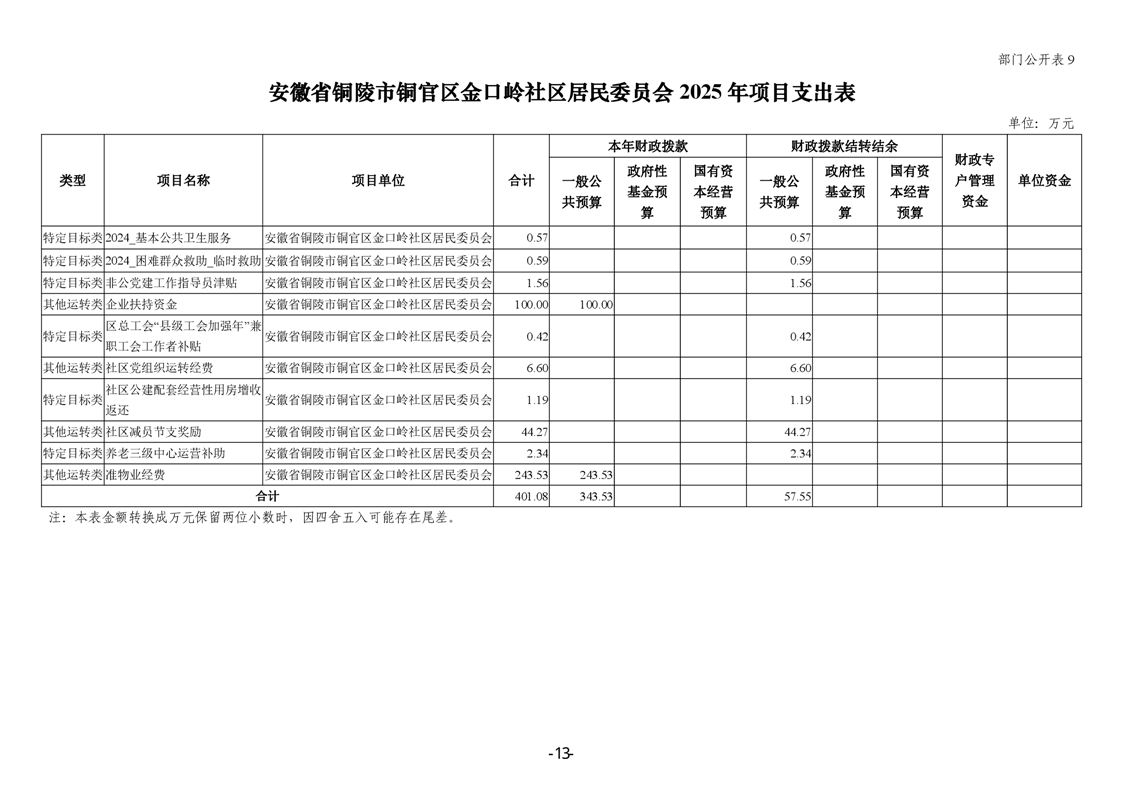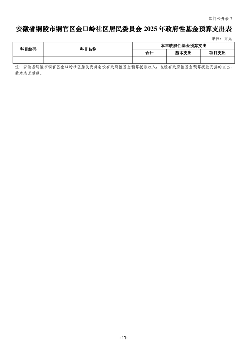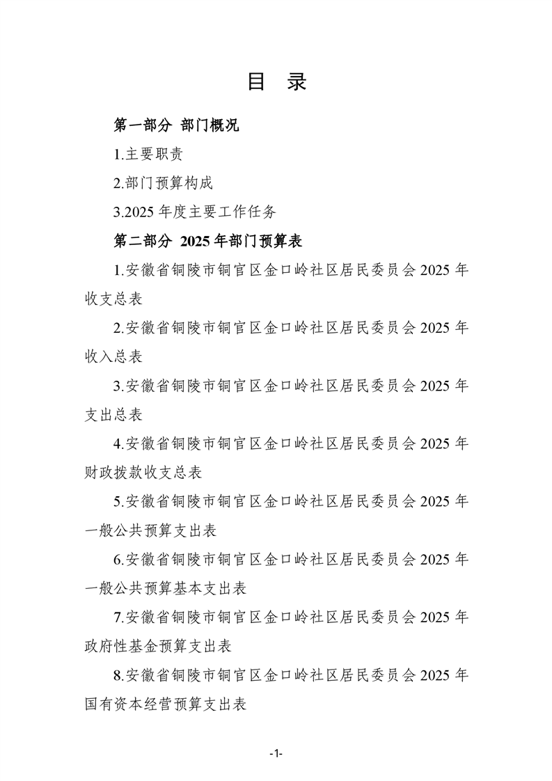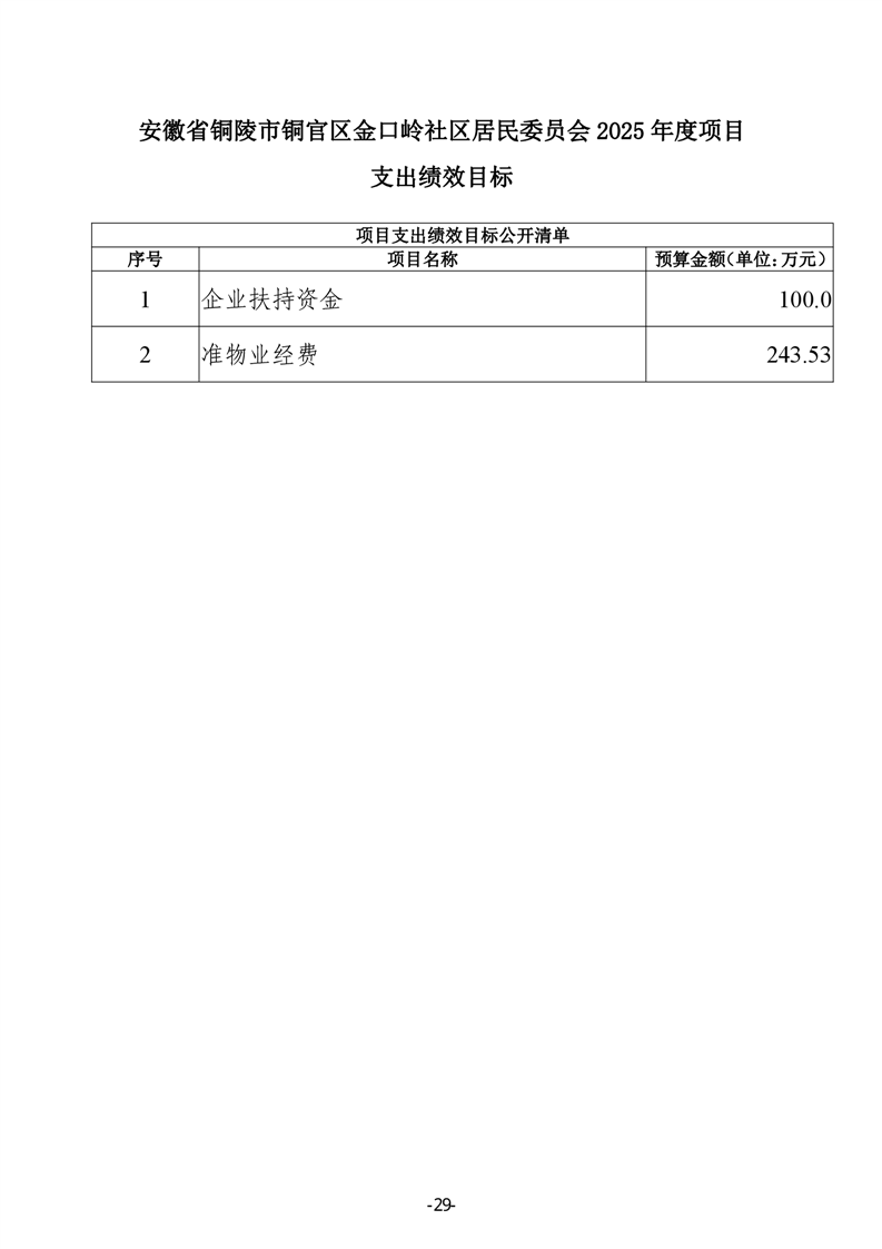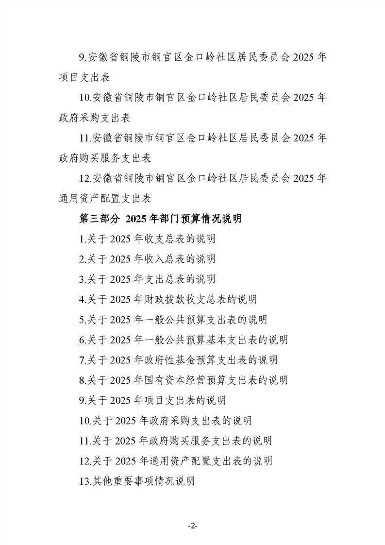 铜官区金口岭社区2025年部门预算 |