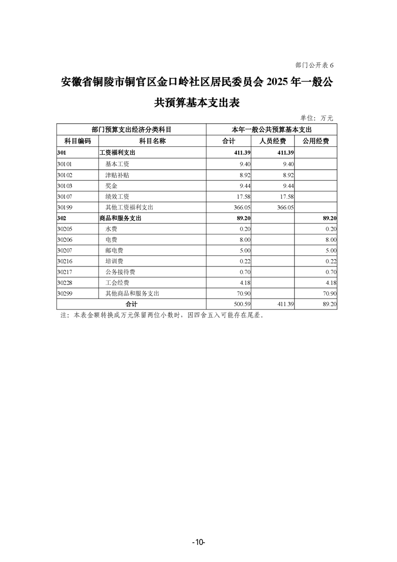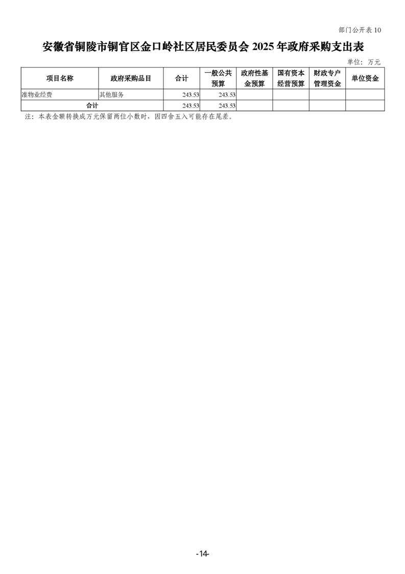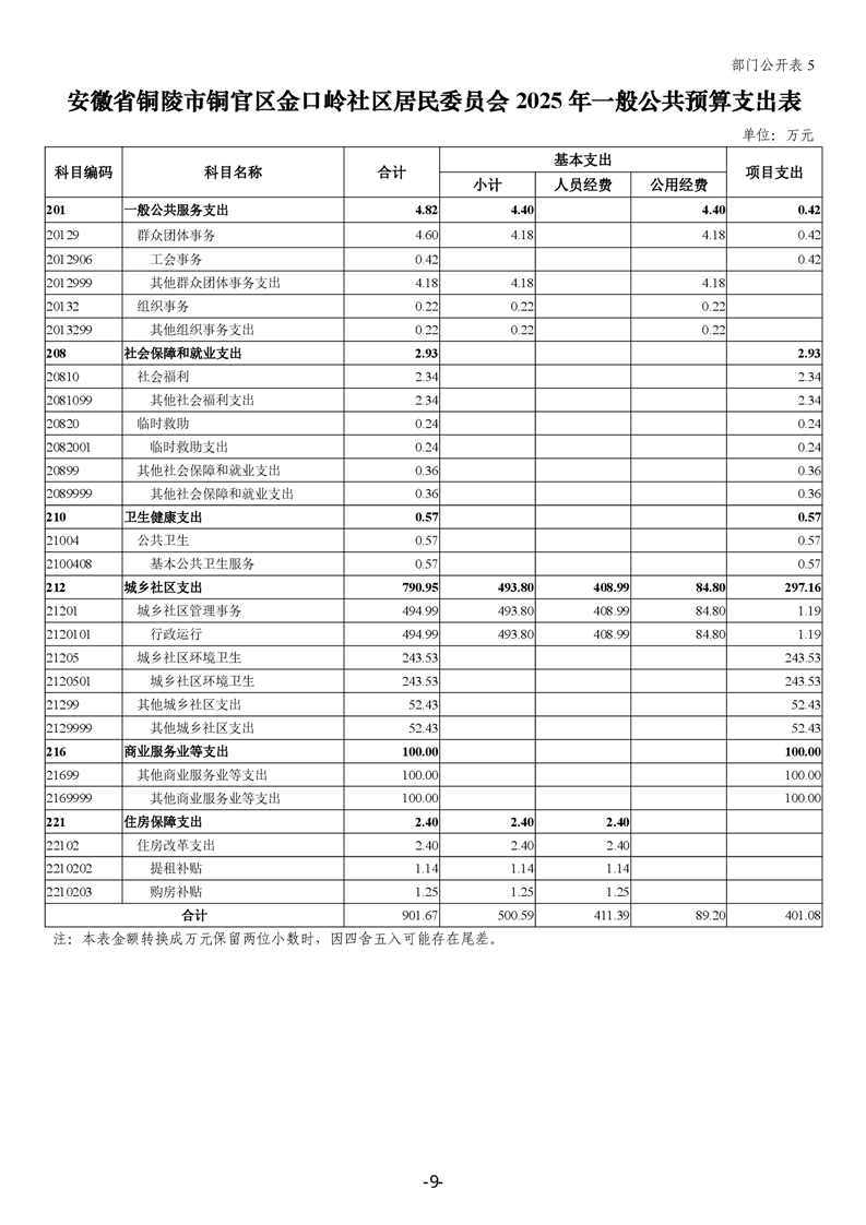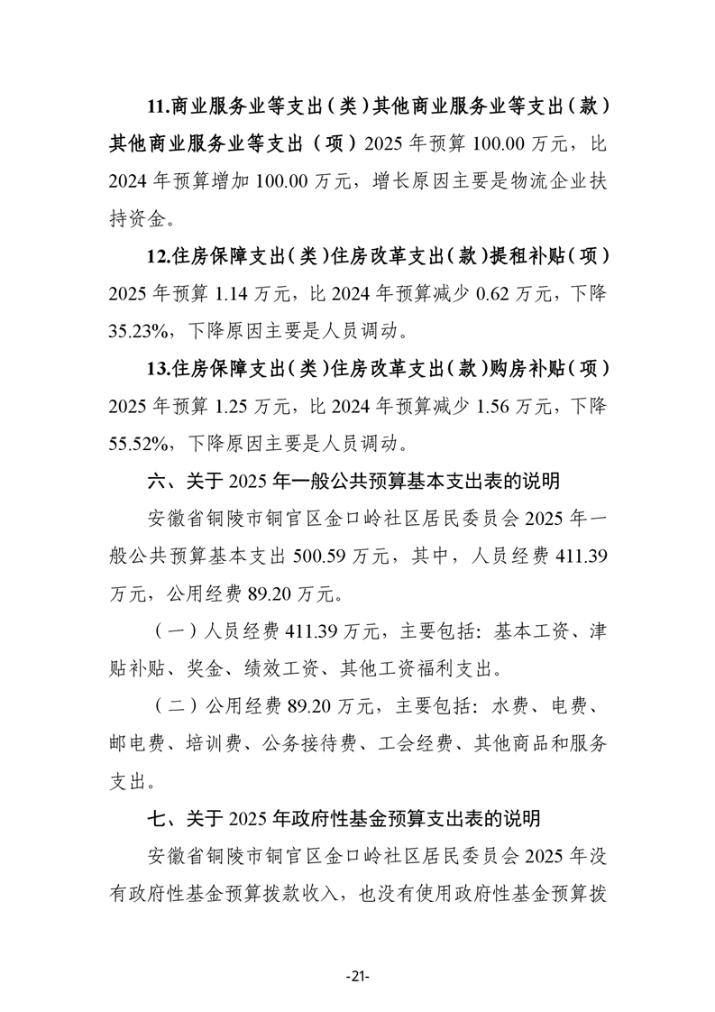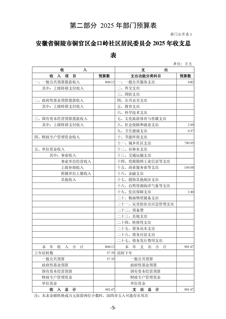 铜官区金口岭社区2025年部门预算 |