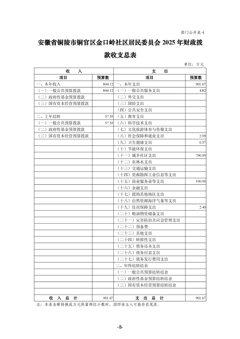 铜官区金口岭社区2025年部门预算-铜官区人民政府