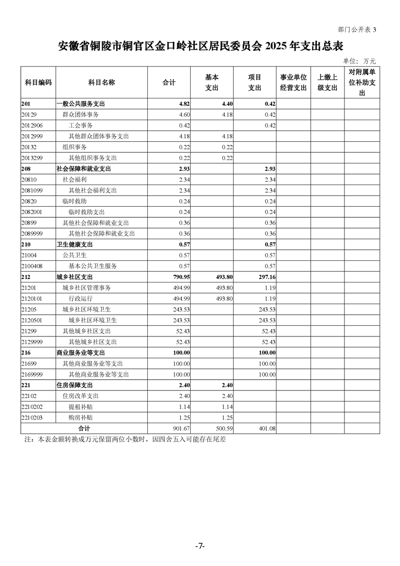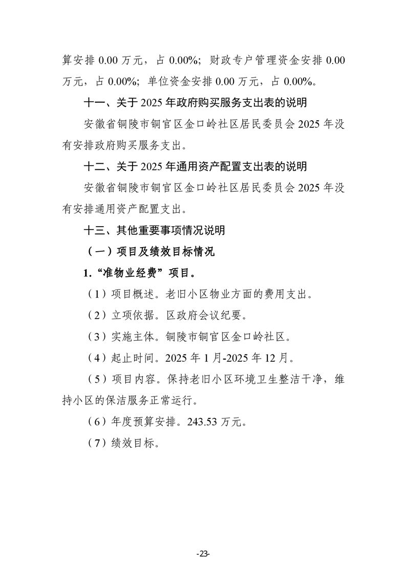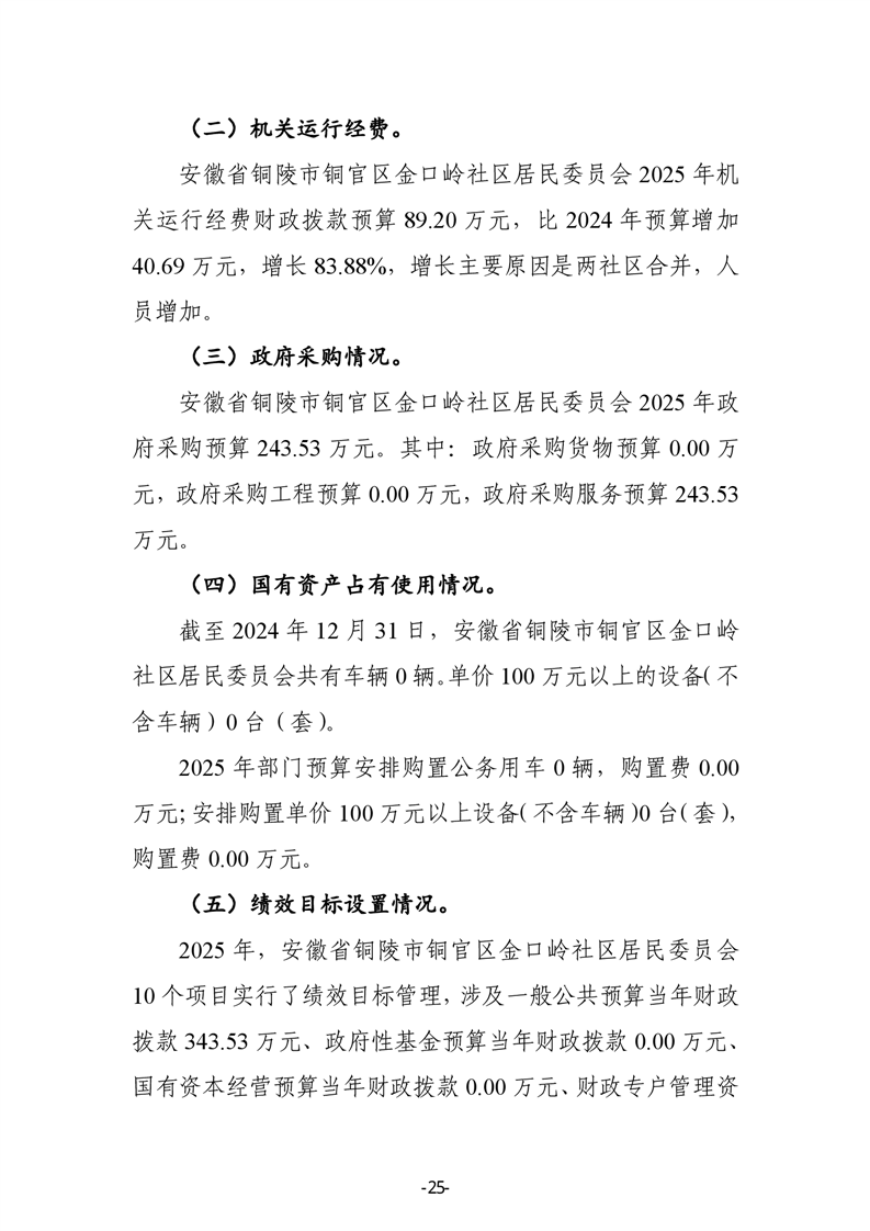 铜官区金口岭社区2025年部门预算