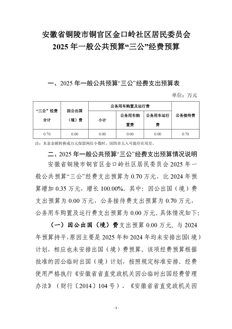 铜官区金口岭社区 2025年“三公”经费预算-铜官区人民政府