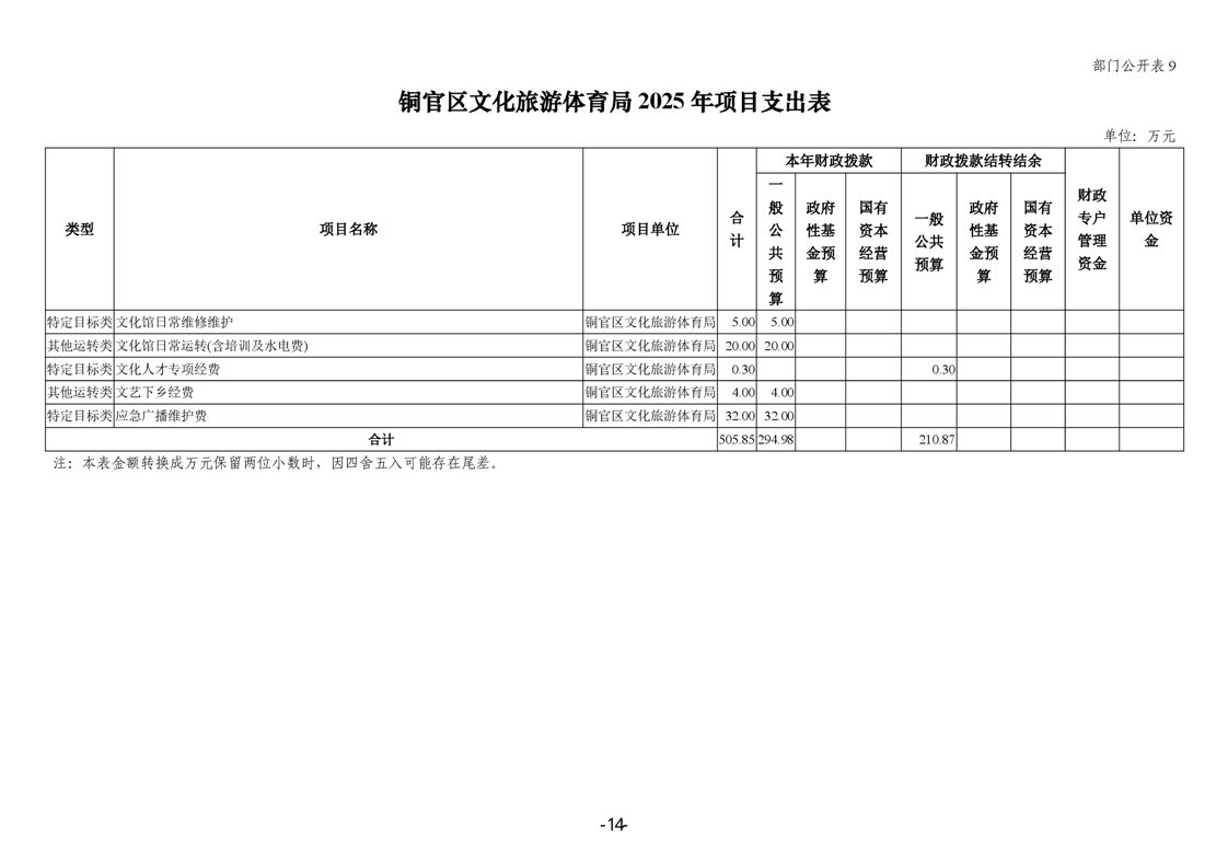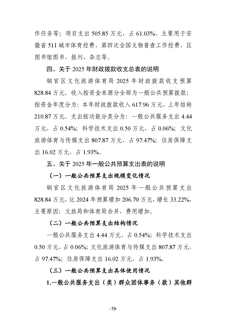 铜官区文化旅游体育局2025年部门预算公开-铜官区人民政府