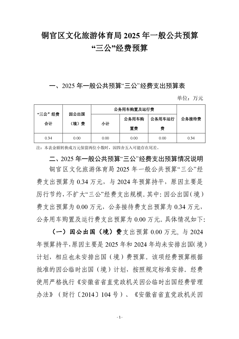 铜官区文化旅游体育局2025年度三公经费预算信息公开-铜官区人民政府