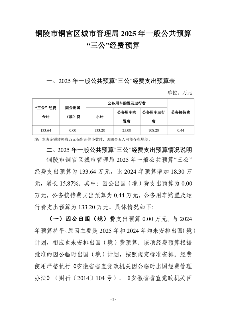 铜陵市铜官区城市管理局2025年一般公共预算“三公”经费预算-铜官区人民政府