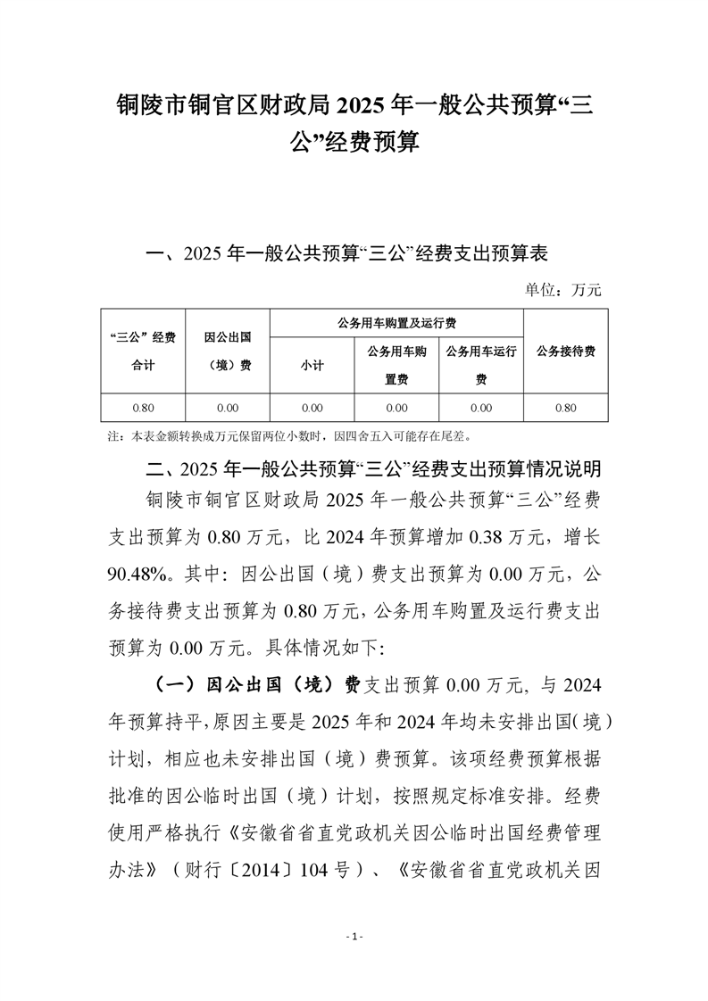 铜官区财政局2025年一般公共预算“三公”经费预算-铜官区人民政府