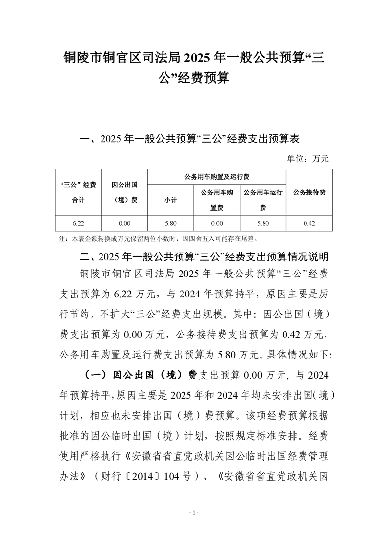 铜陵市铜官区司法局2025年度三公经费预算-铜官区人民政府