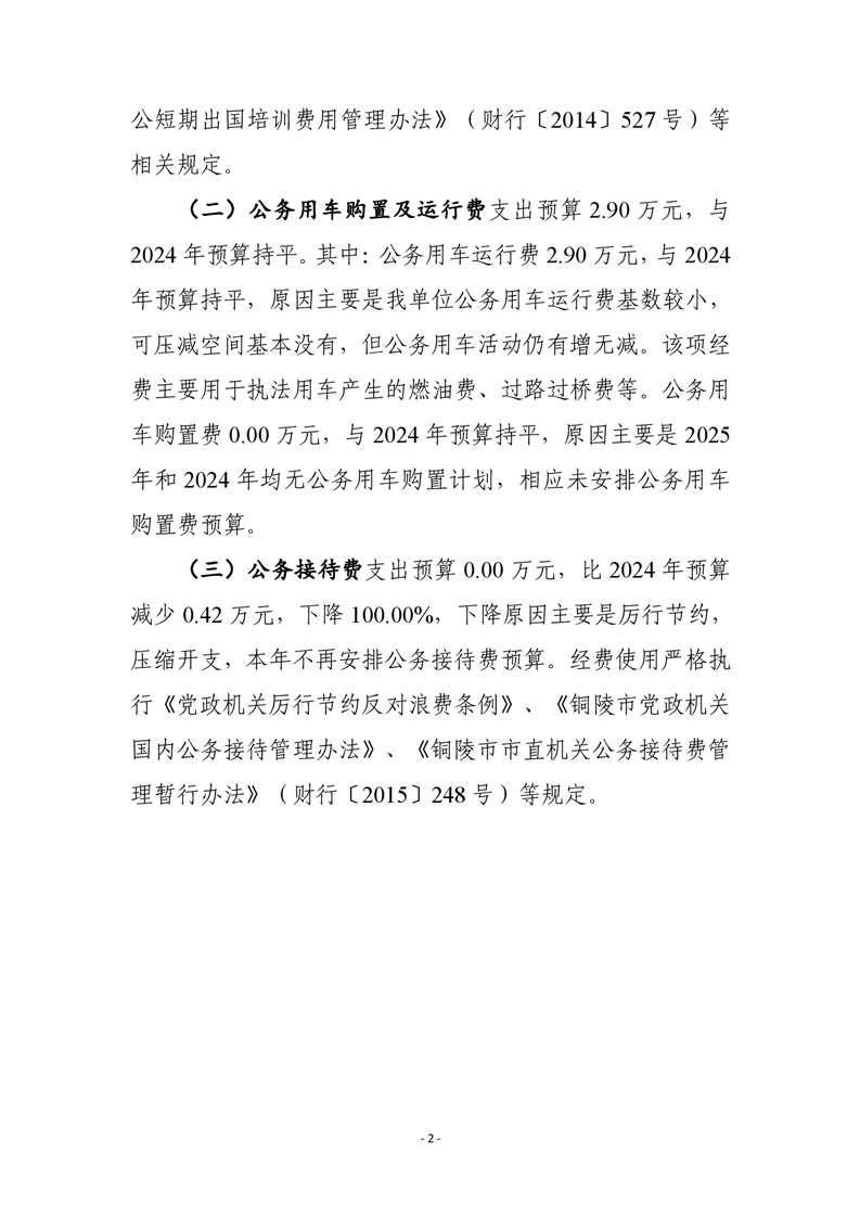 铜官区生态环境分局 2025 年一般公共预算“三公”经费预算