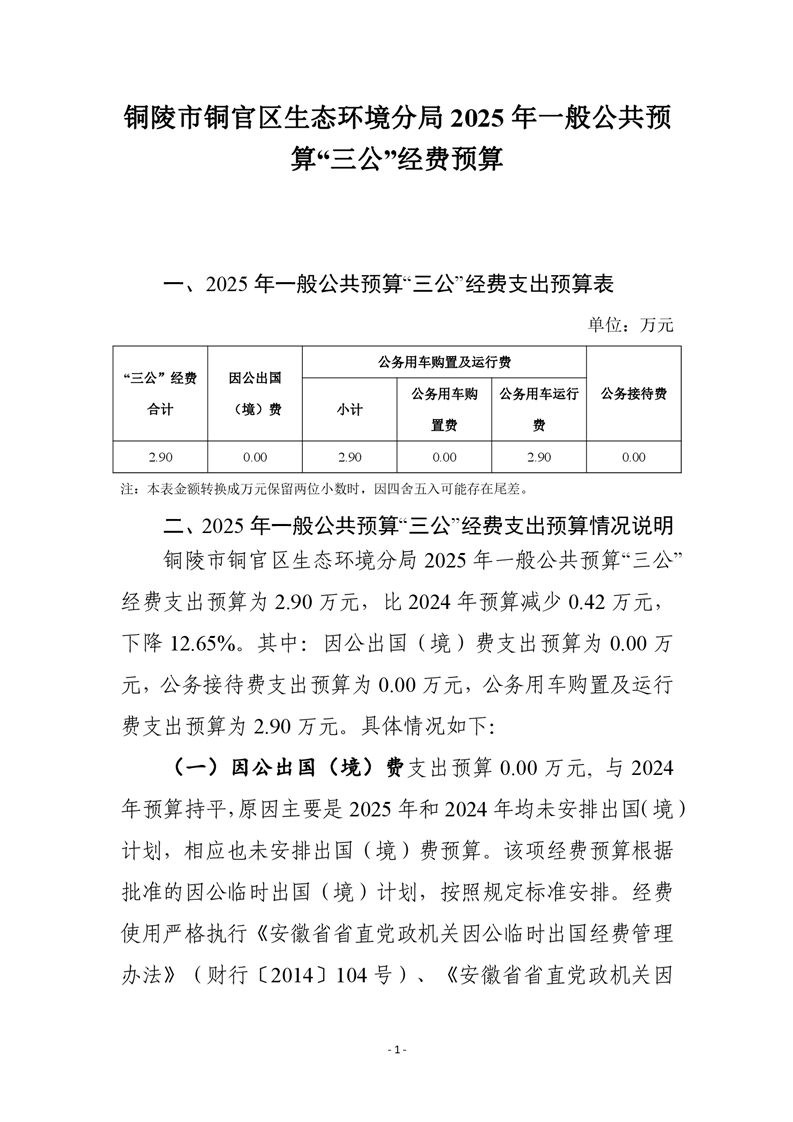铜官区生态环境分局 2025 年一般公共预算“三公”经费预算-铜官区人民政府