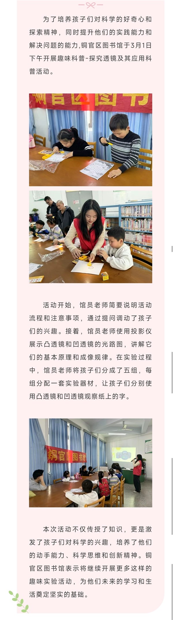 趣味科普丨铜官区图书馆开展《探究透镜及其应用》科普活动-铜官区人民政府