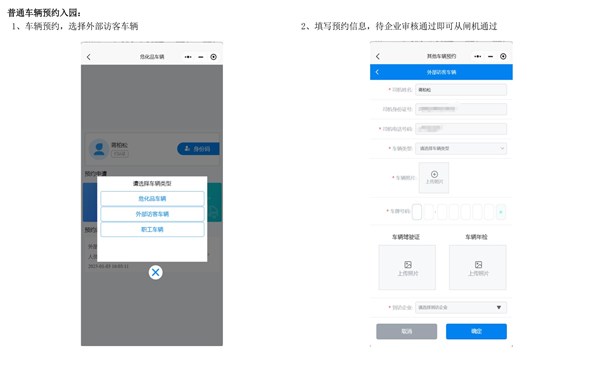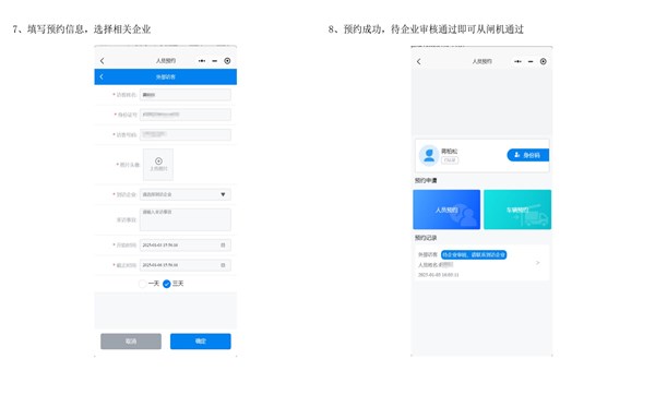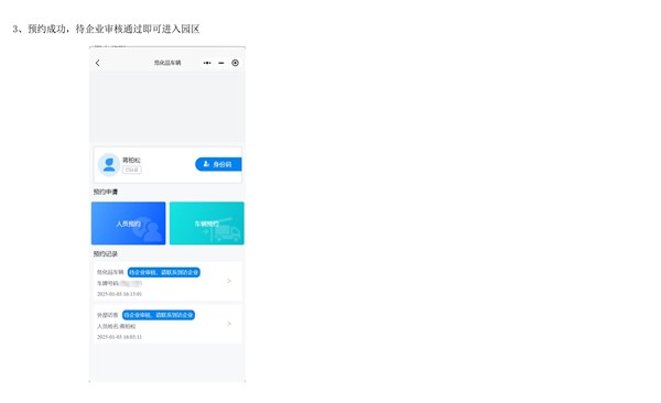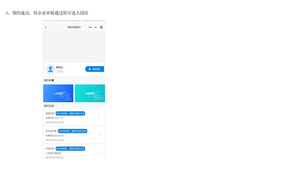(2)非系统白名单车辆及人员需临时进出园区的,可通过园区小程序申请临时车辆预约,经审核后,方可进出园区。