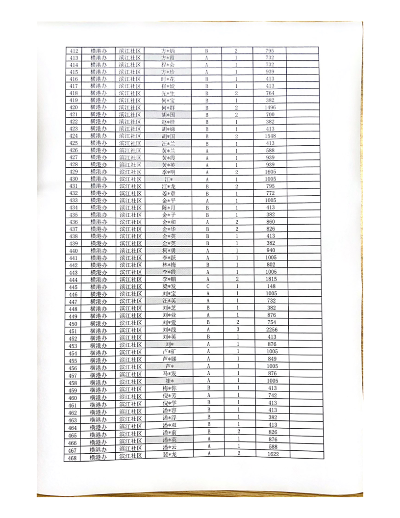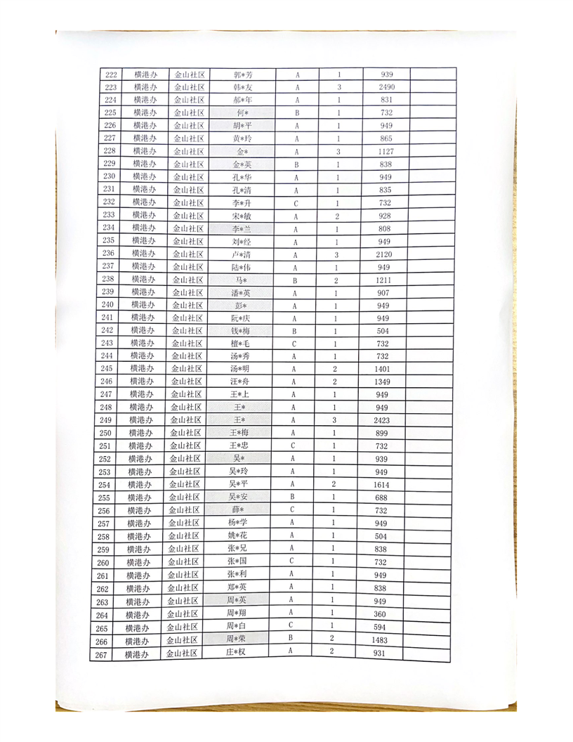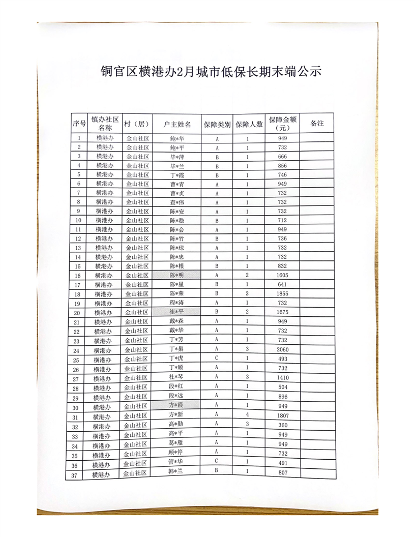 铜官区横港办2月城市低保长期末端公示