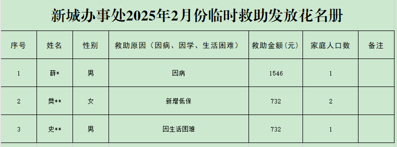 新城办事处2025年2月份临时救助发放花名册-铜官区人民政府