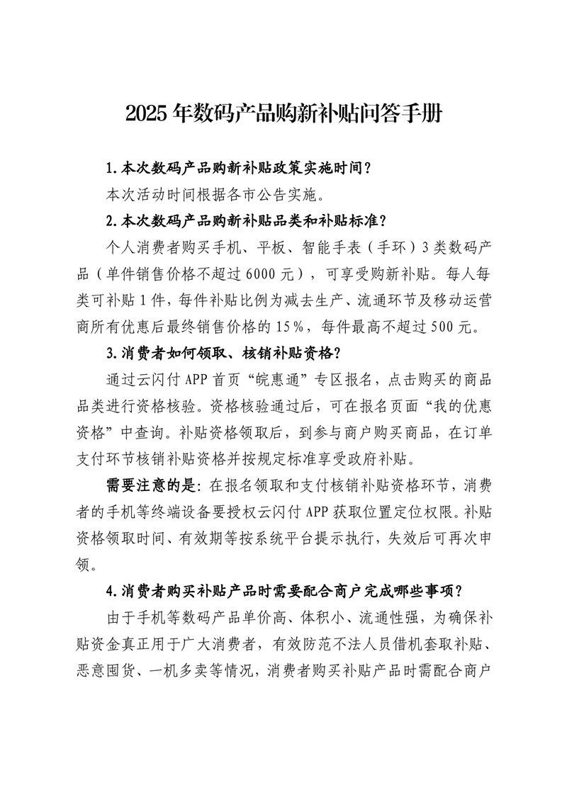 2025 年数码产品购新补贴问答手册-铜官区人民政府