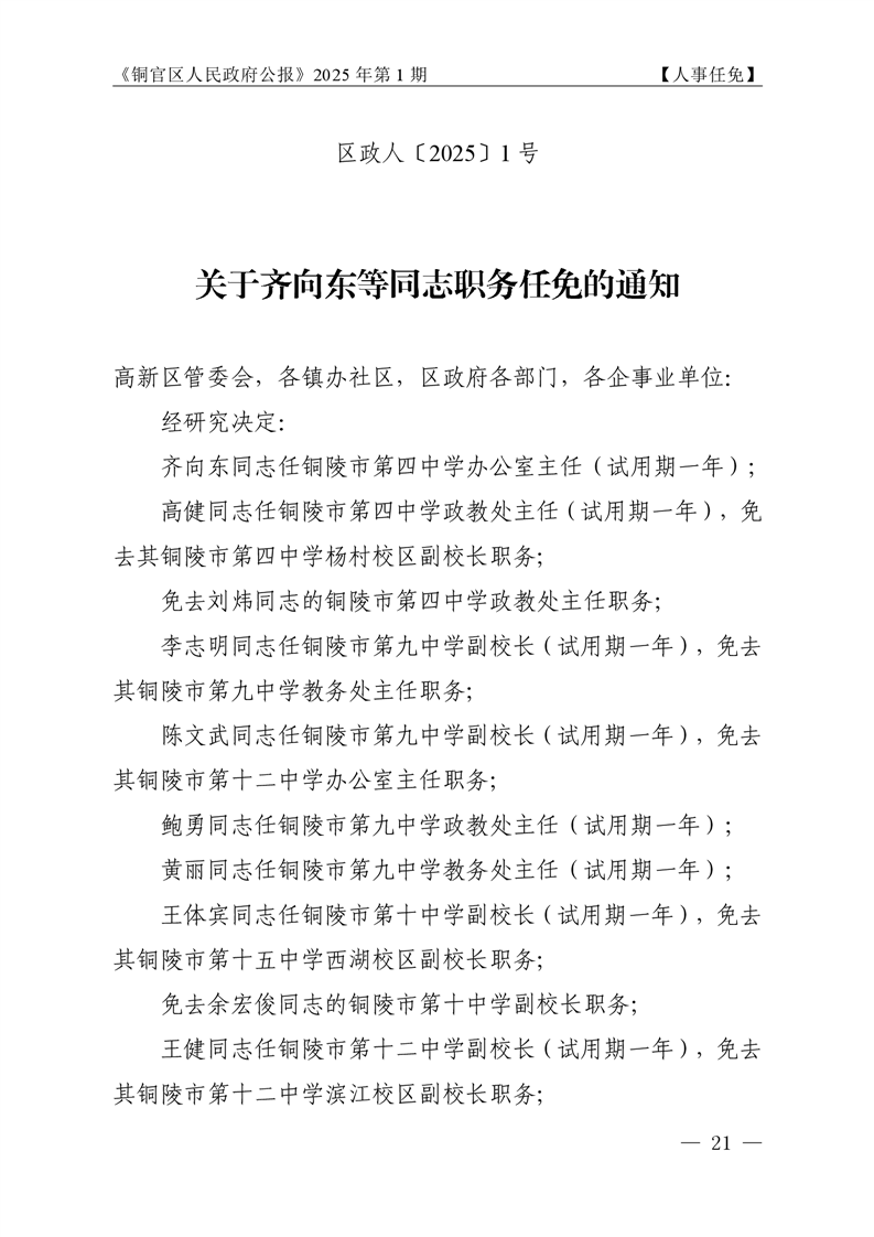 铜官区人民政府公报(2025年第一期)-铜官区人民政府