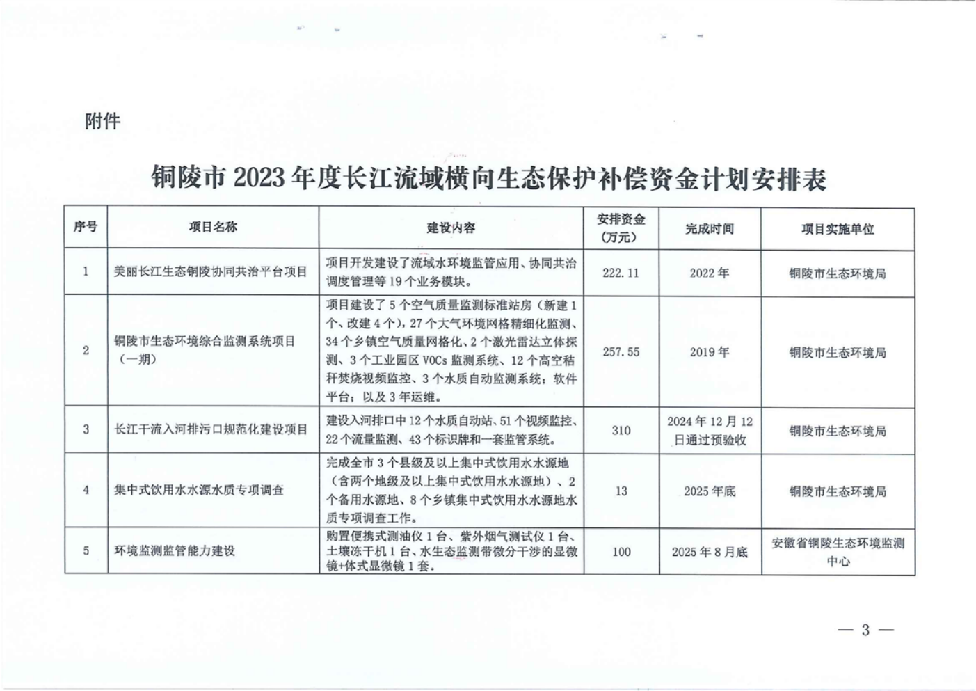 关于铜陵市2023年度长江流域横向生态保护补偿资金计划的报告-铜官区人民政府