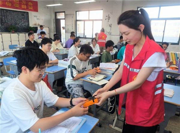 活动中,青年团员志愿者们带着,将象征一举高“棕”的粽子艾香挂件送给高三年级的同学们,还贴心地叮嘱学生们放松心态、沉着应考,一句句暖心话语,让紧张备考的学生们倍感温暖。接过香囊的同学们脸上洋溢着开心的笑容,纷纷表示能够收到这样一份特别的“高考礼物”,既解压又温暖,自己一定全力以赴考出好成绩。