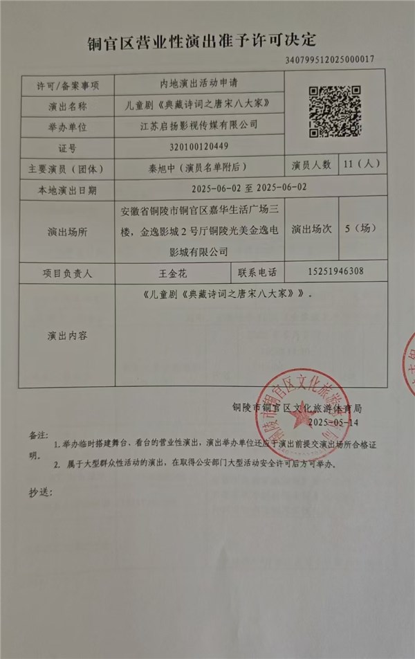 营业性演出——儿童剧《典藏诗词之唐宋八大家》-铜官区人民政府
