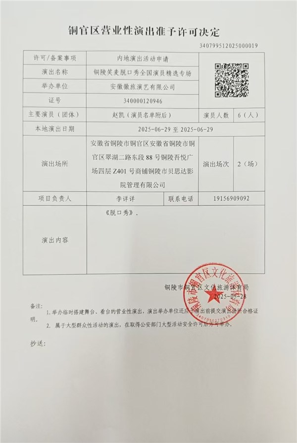 营业性演出——铜陵笑麦脱口秀全国演出精选专场-铜官区人民政府