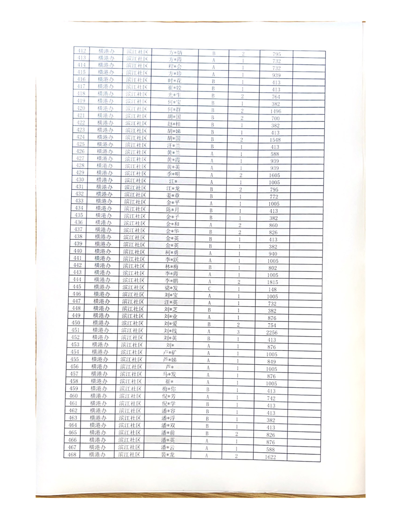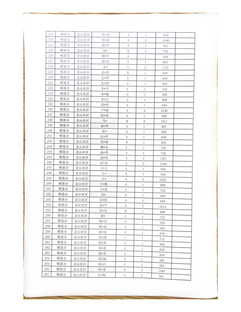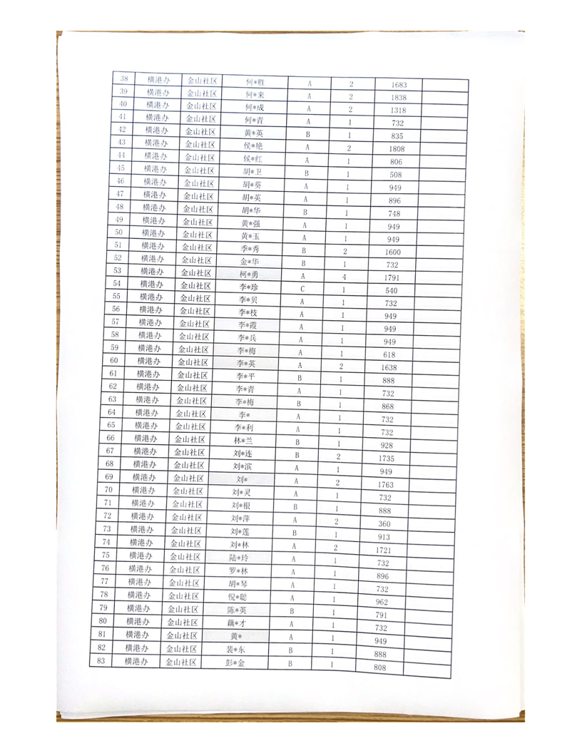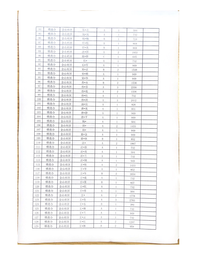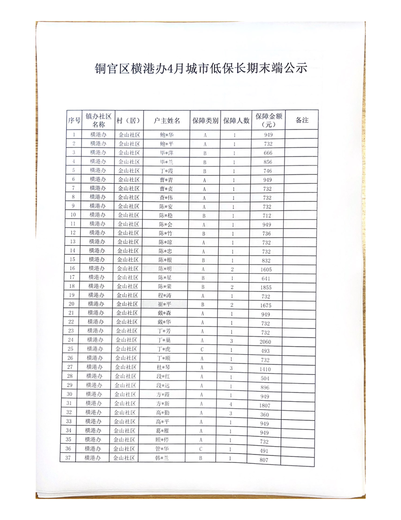 铜官区横港办4月城市低保长期末端公示