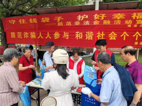 6月15日上午,横港办事处在汇景新城小区开展“守住钱袋子、护好幸福家”为主题的防范非法金融风险集中宣传活动。