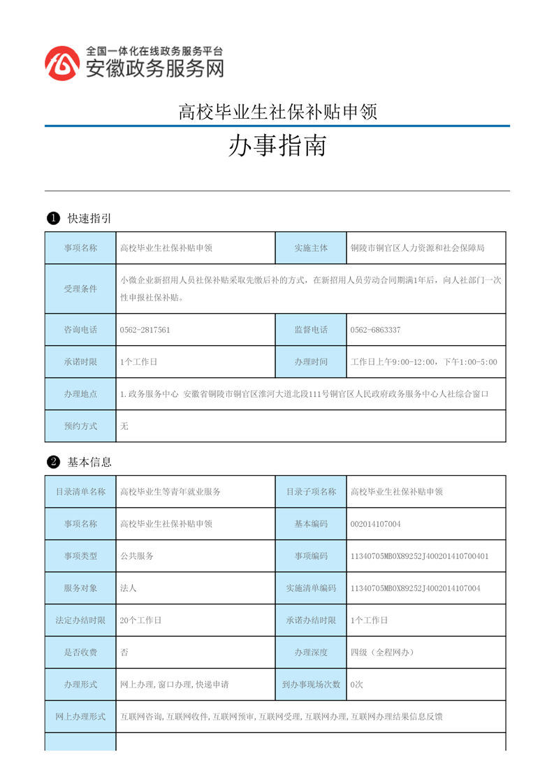 高校毕业生社保补贴申领办事指南-铜官区人民政府