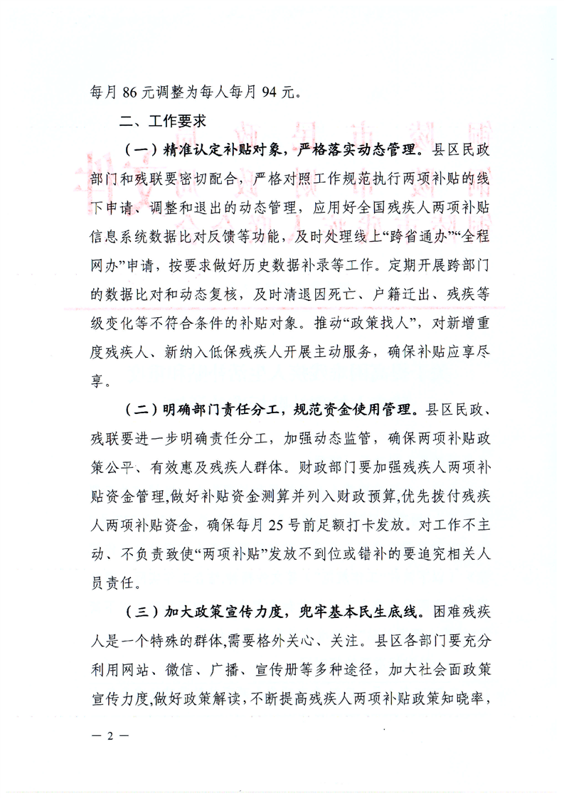 关于提高困难残疾人生活补贴和重度残疾人护理补贴标准的通知