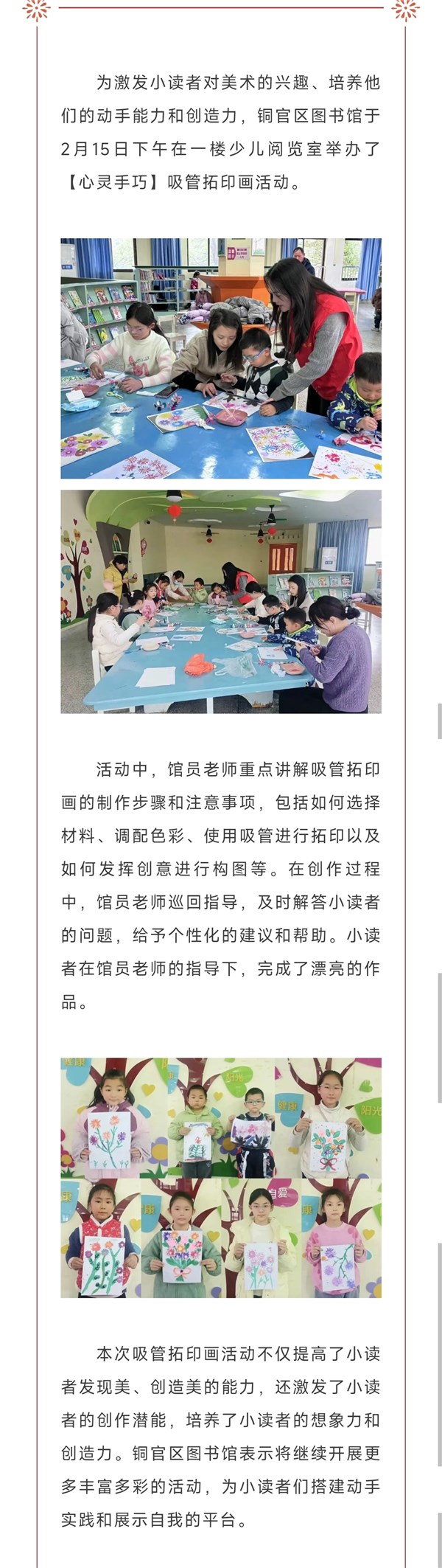 铜官区图书馆开展“吸管拓印画”创意手工活动