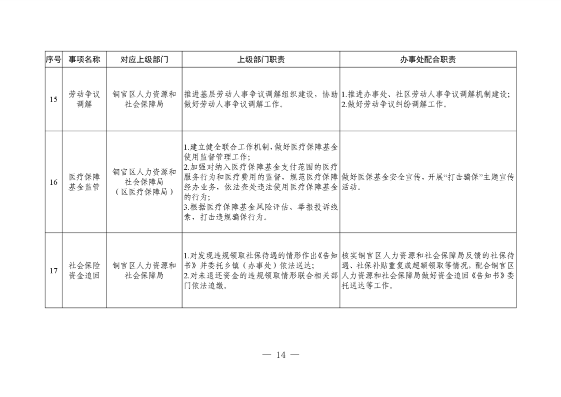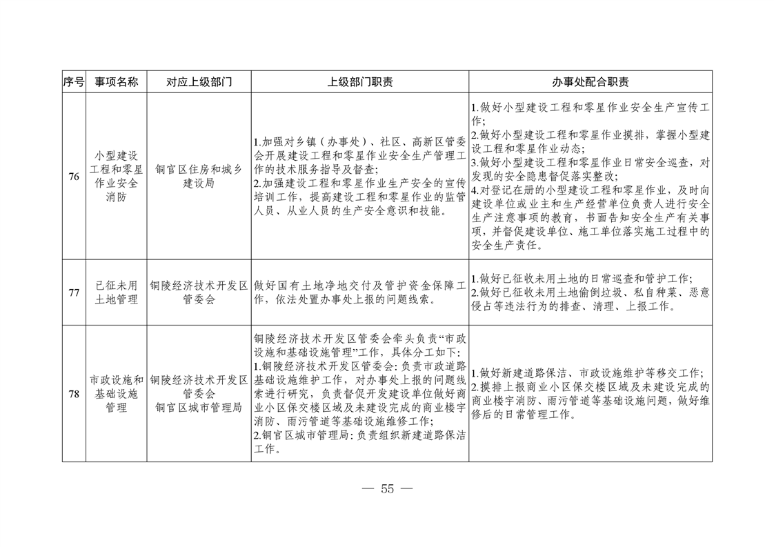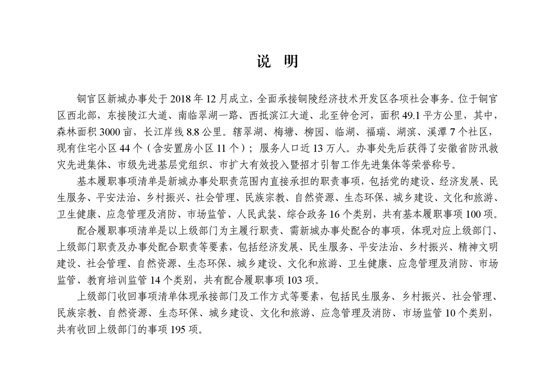 铜陵市铜官区新城办事处履行职责事项清单-铜官区人民政府
