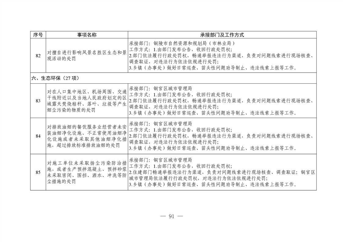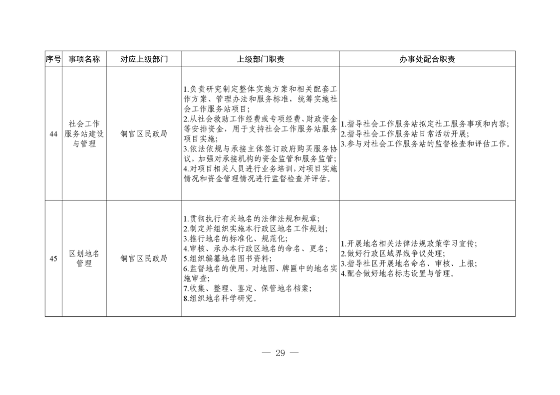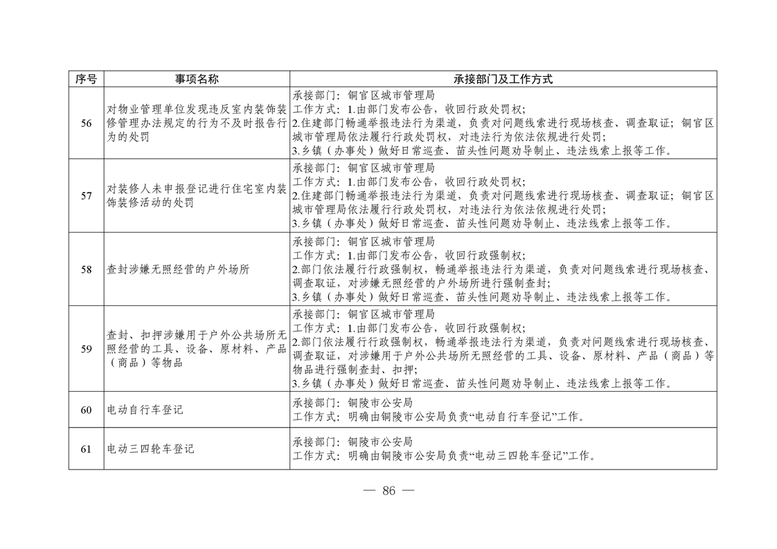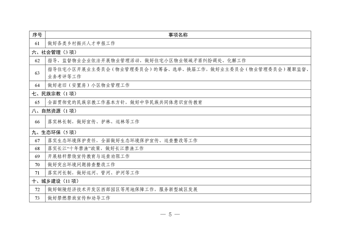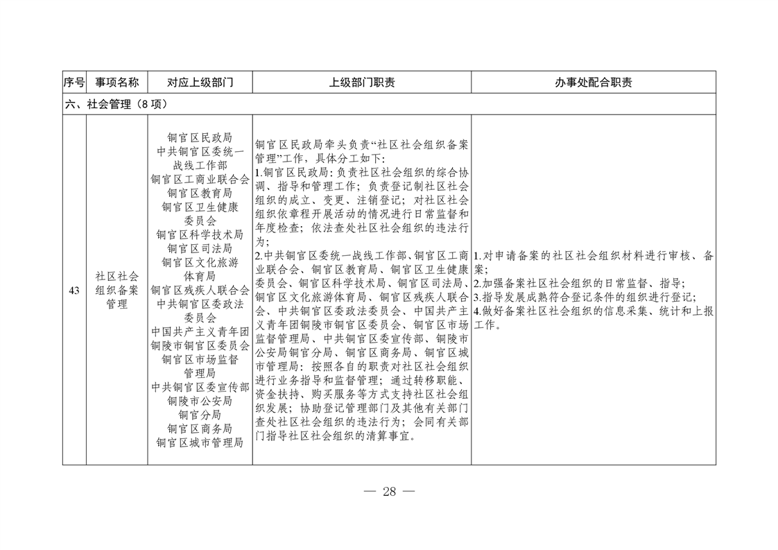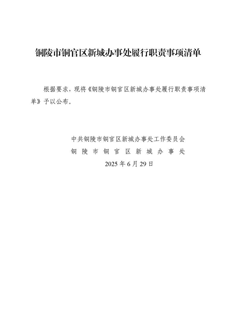铜陵市铜官区新城办事处履行职责事项清单