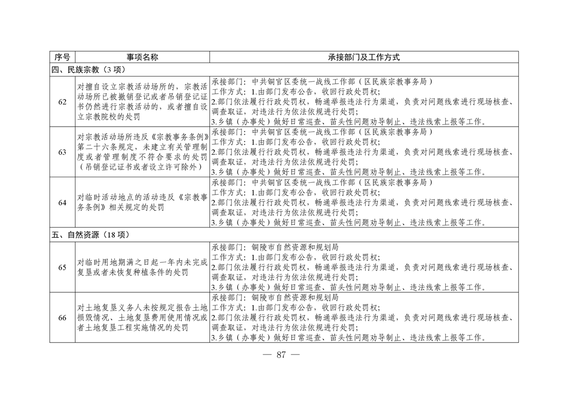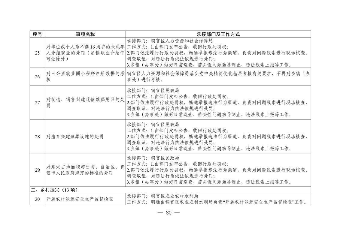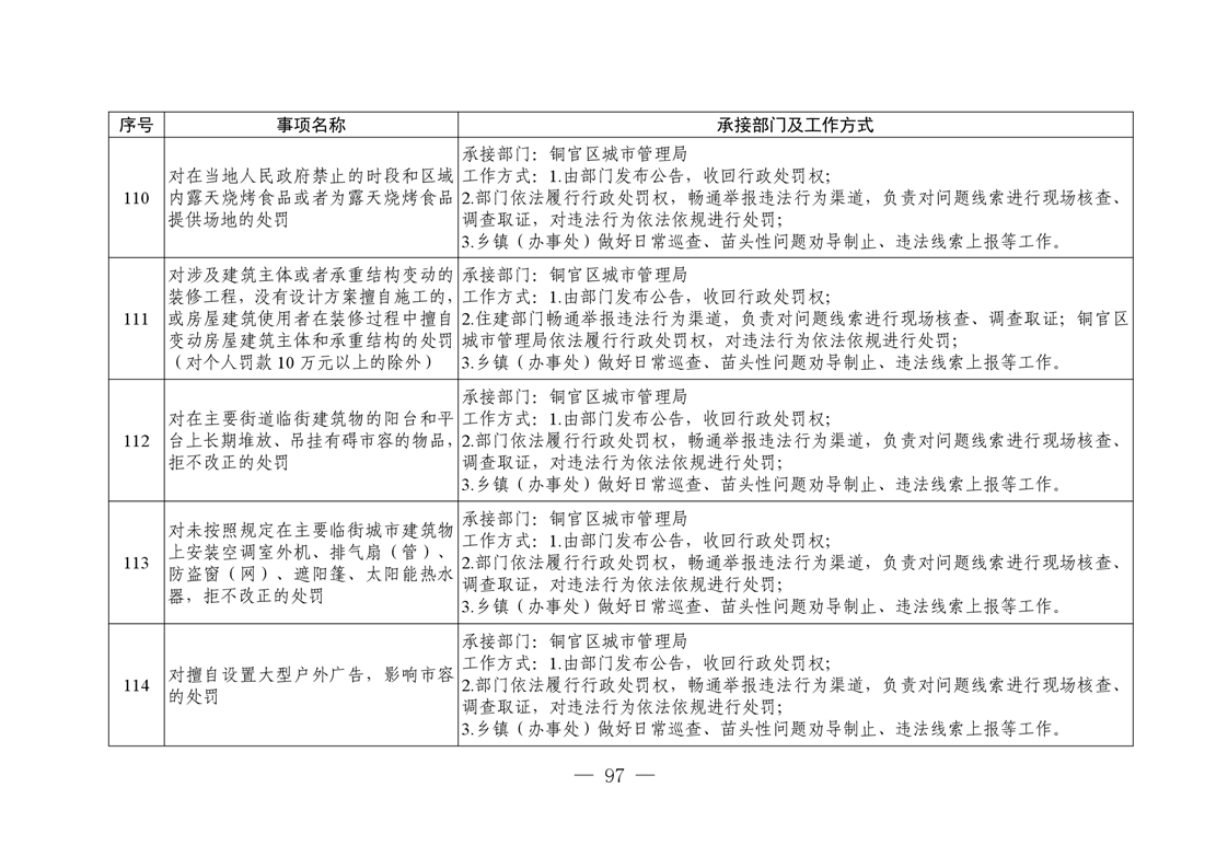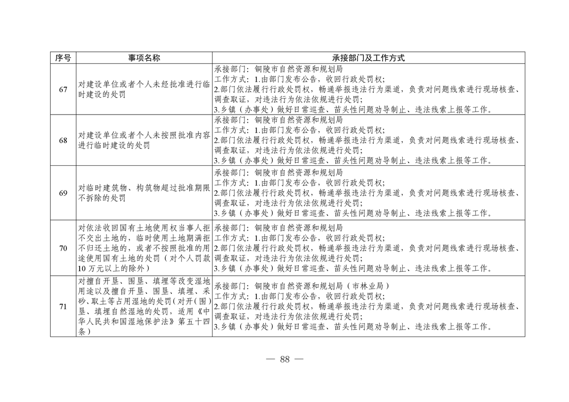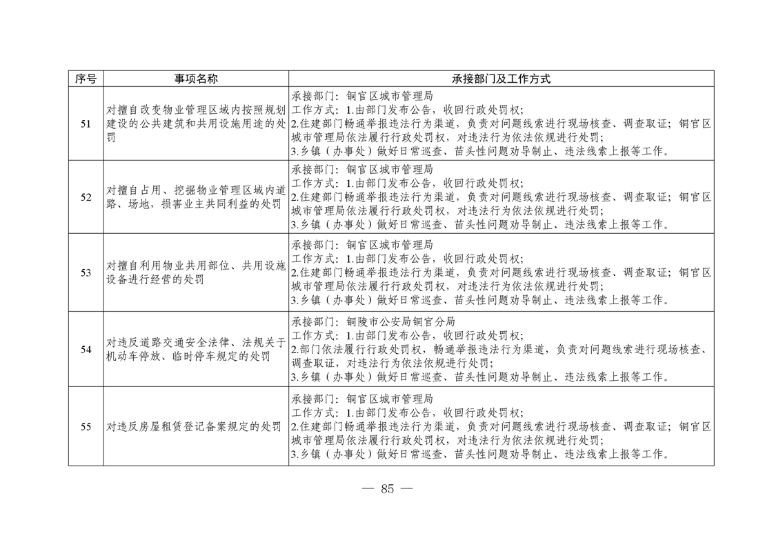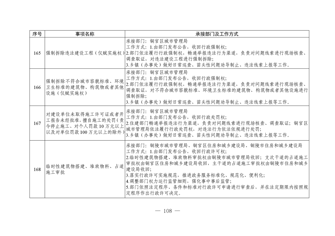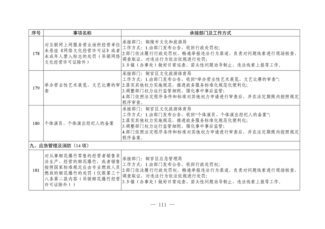 铜陵市铜官区新城办事处履行职责事项清单