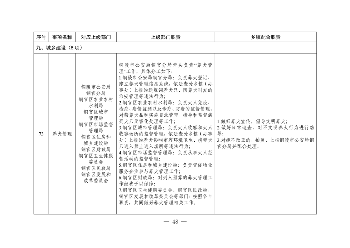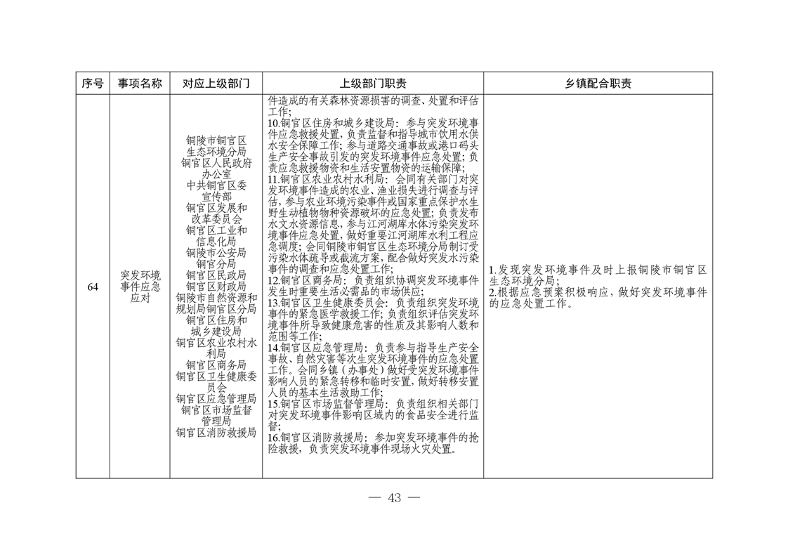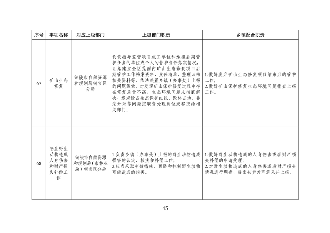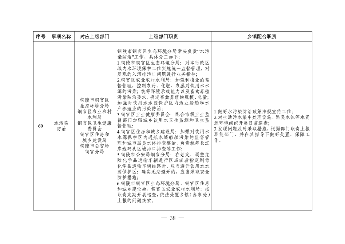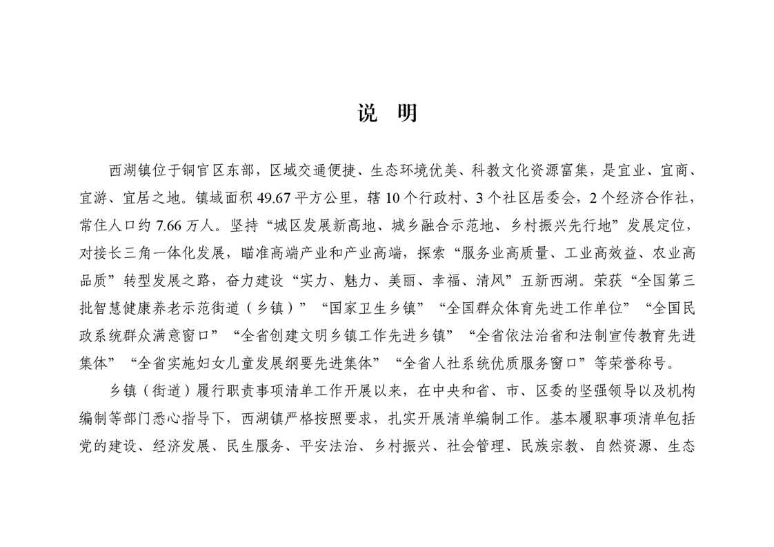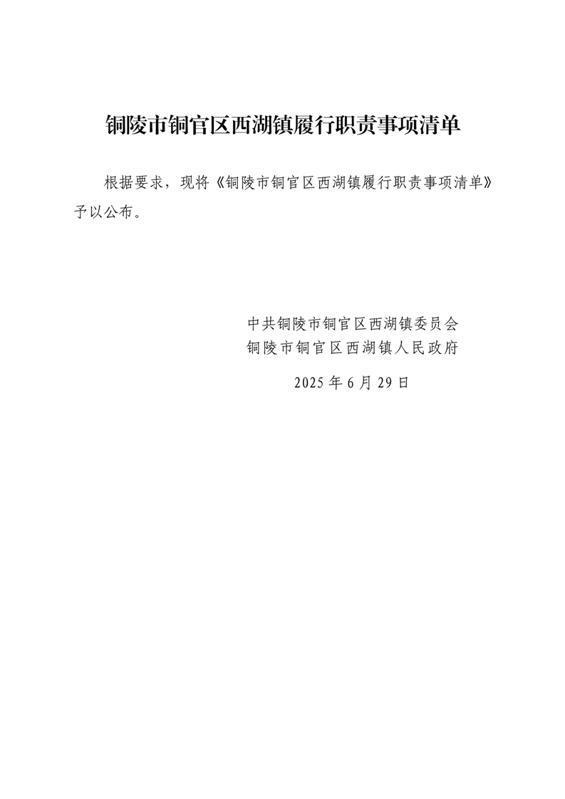 铜陵市铜官区西湖镇履行职责事项清单