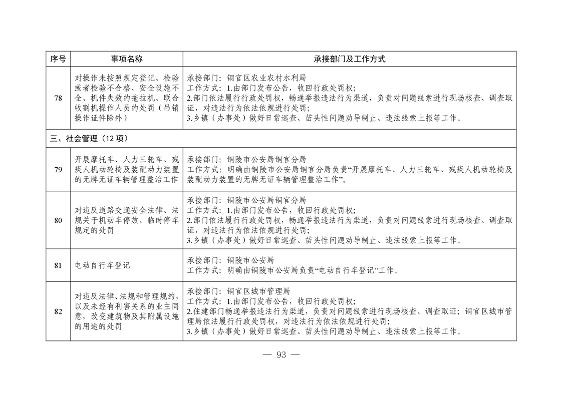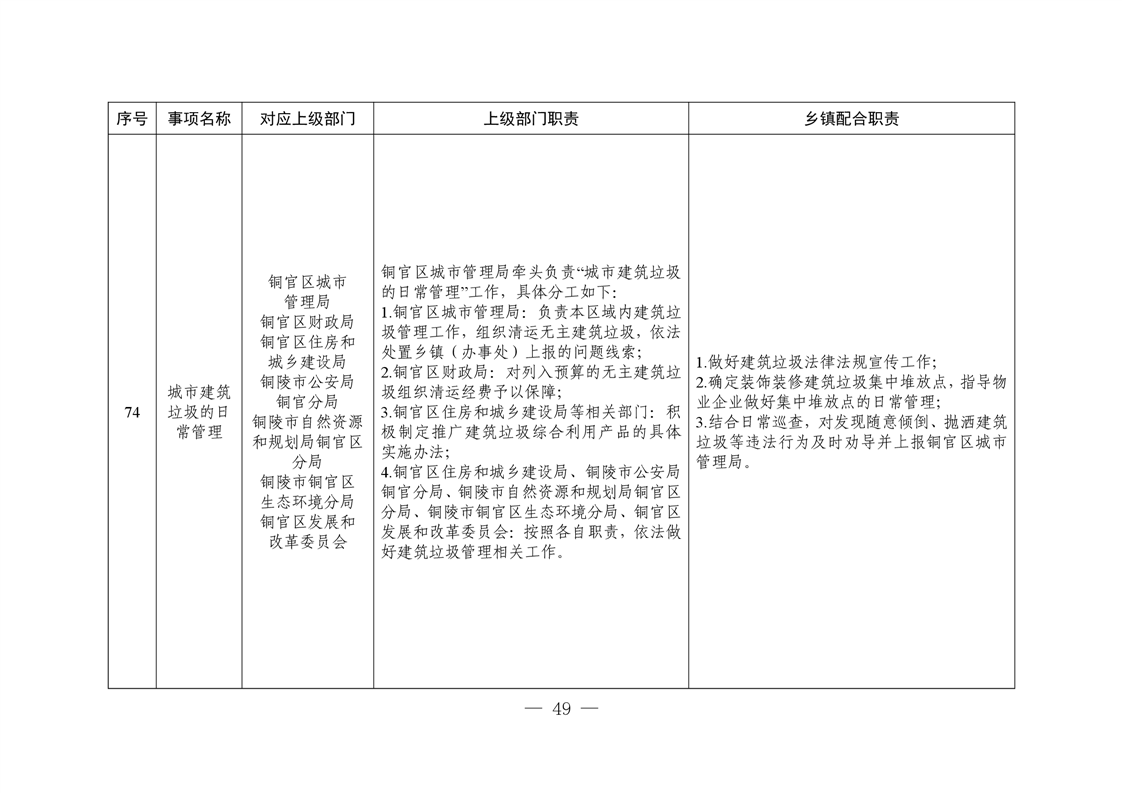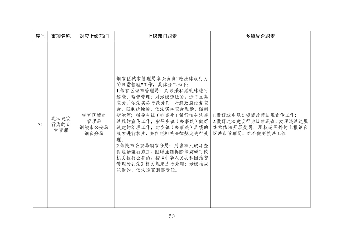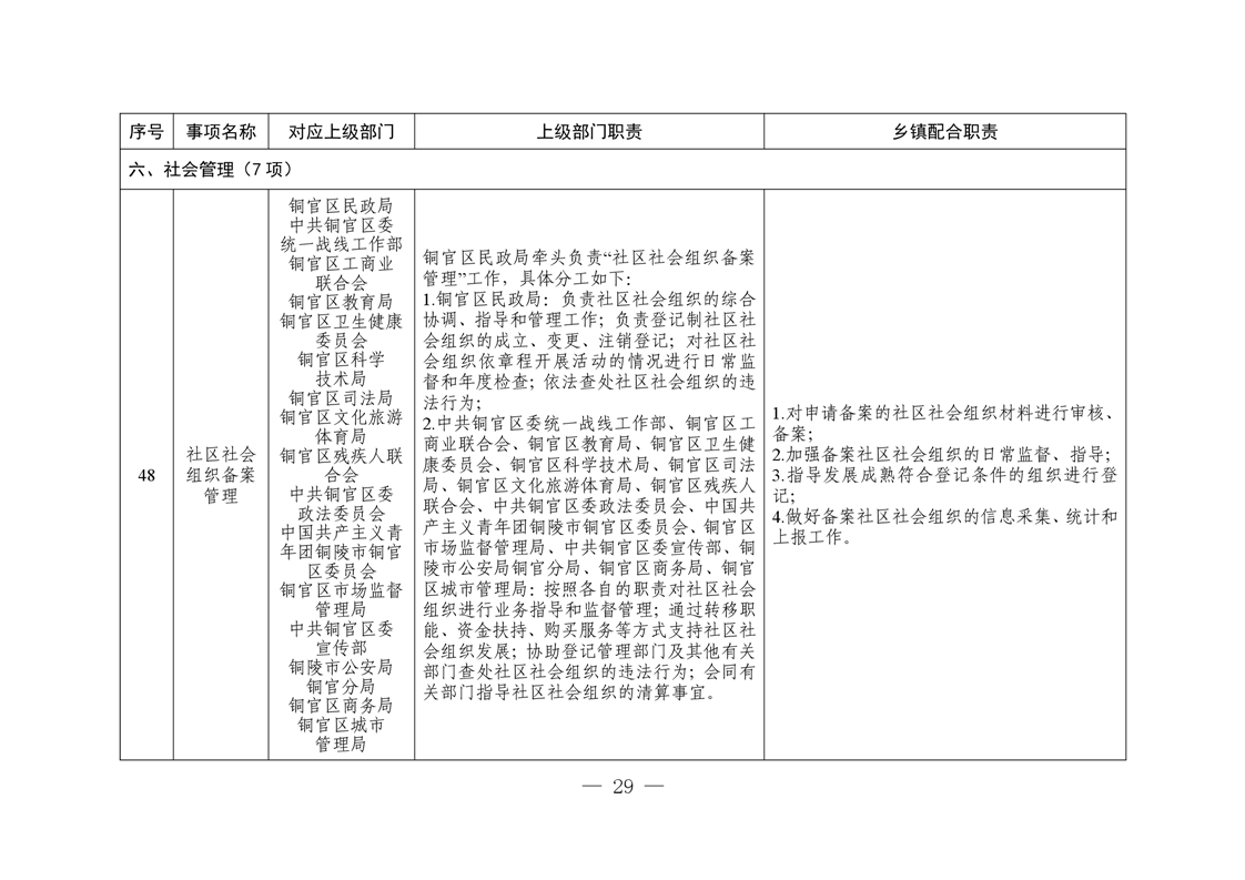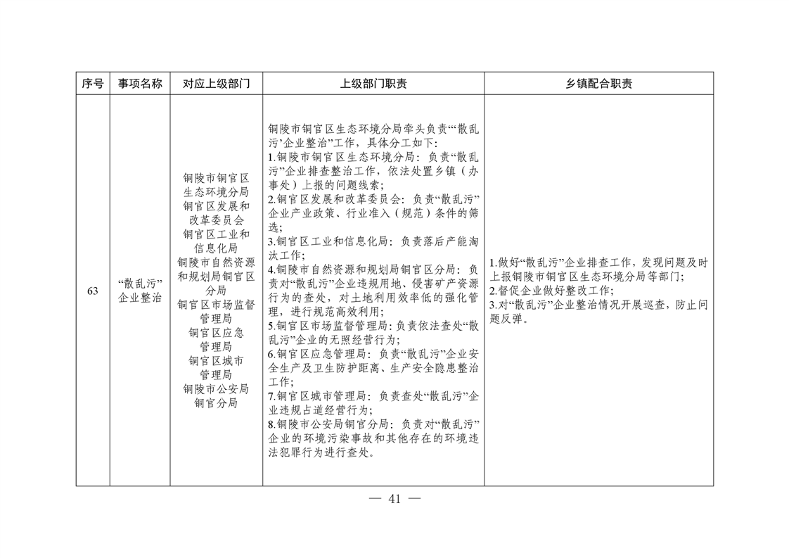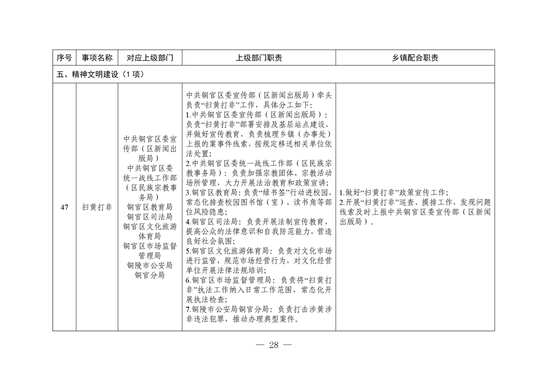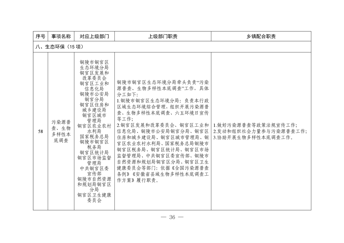 铜陵市铜官区西湖镇履行职责事项清单