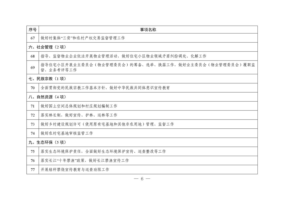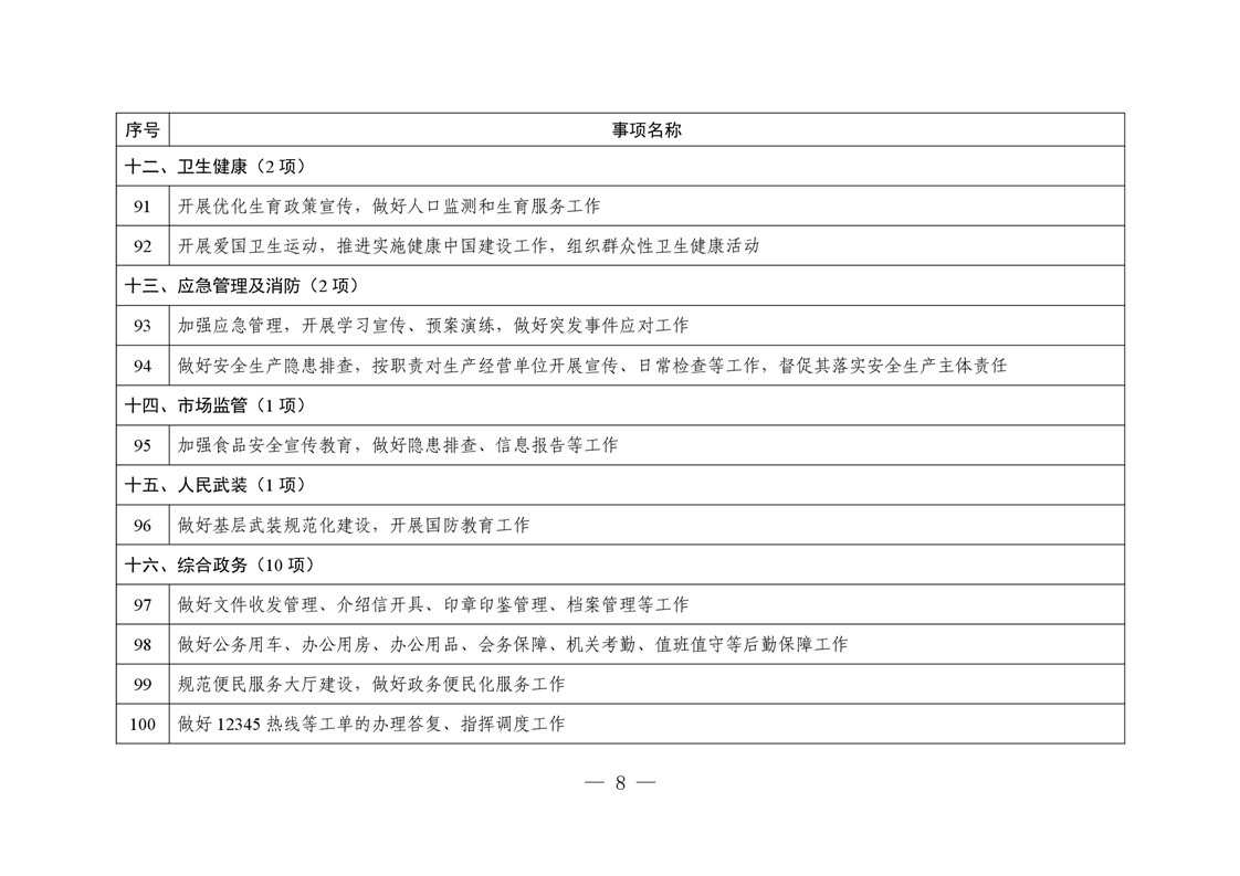 乡镇级政府权力清单和责任清单