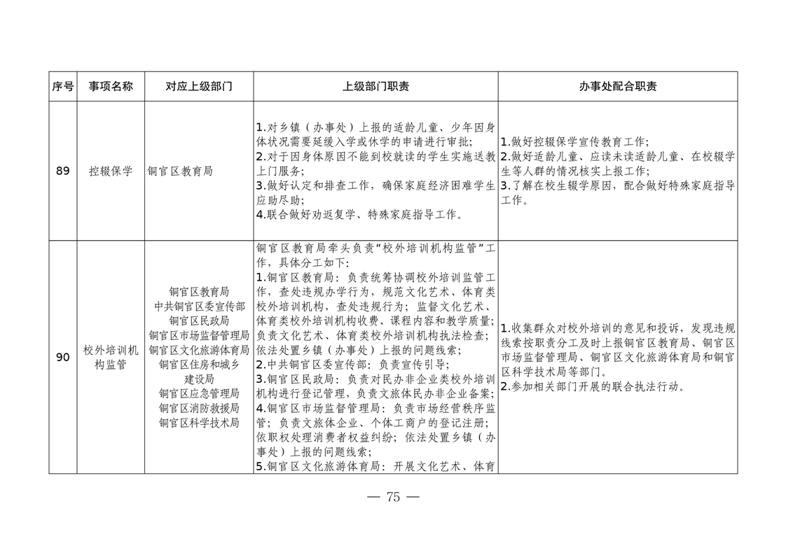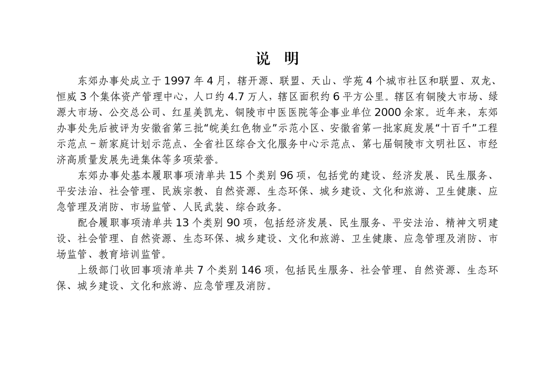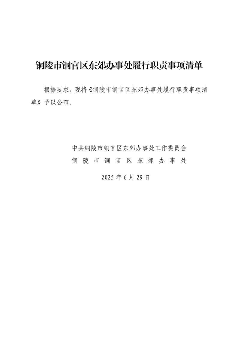 铜陵市铜官区东郊办事处履行职责事项清单-铜官区人民政府