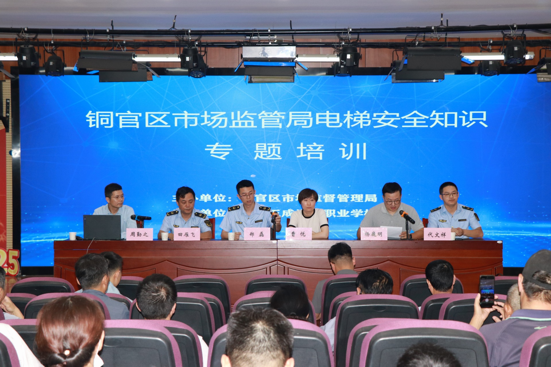 为贯彻落实铜官区“安全生产月”部署要求,铜官区市场监管局以安全生产月为契机,于6月12日组织全区住宅电梯使用单位的安全管理负责人、安全总监共计150余人参加电梯安全知识培训会。