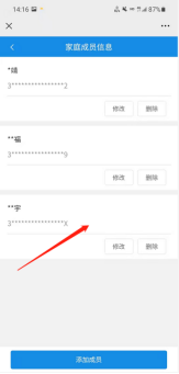 打开“城乡居民两险缴费”功能页面后,点击“选择人员”(如图3),打开参保人员选择页面。在此页面点击下方的“添加成员”按钮(如图4)。在打开的成员添加页面,输入新的参保缴费人的身份证号码与姓名,然后点击“保存”按钮(如图5)。