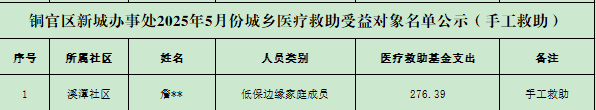 铜官区新城办事处2025年5月份城乡医疗救助受益对象名单公示(手工救助)