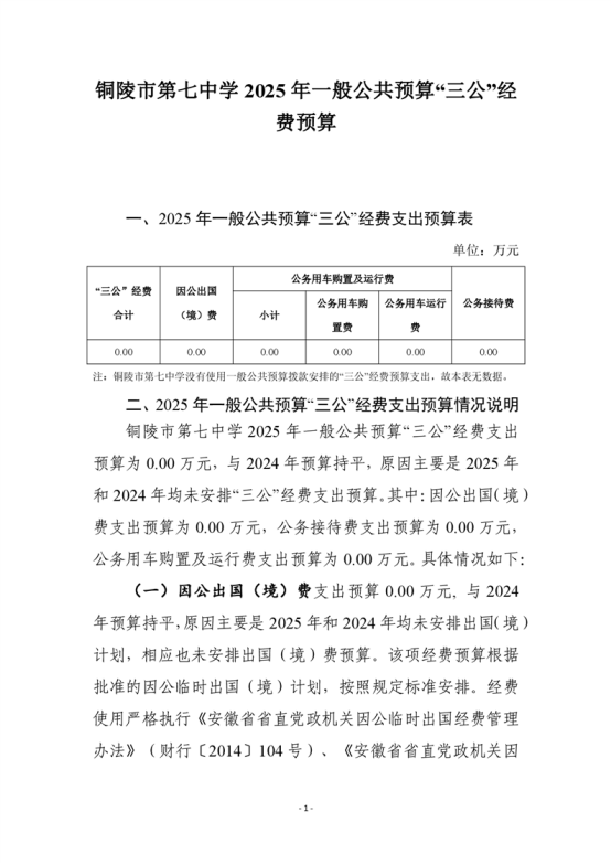 铜陵市第七中学2025年度三公经费预算信息公开-铜官区人民政府