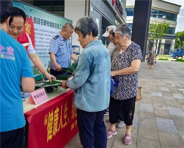 6月26日,狮子山办联合辖区派出所在狮子山智慧农贸市场开展全民禁毒宣传活动,增强居民禁毒意识,形成全民参与的良好氛围。(狮子山办)