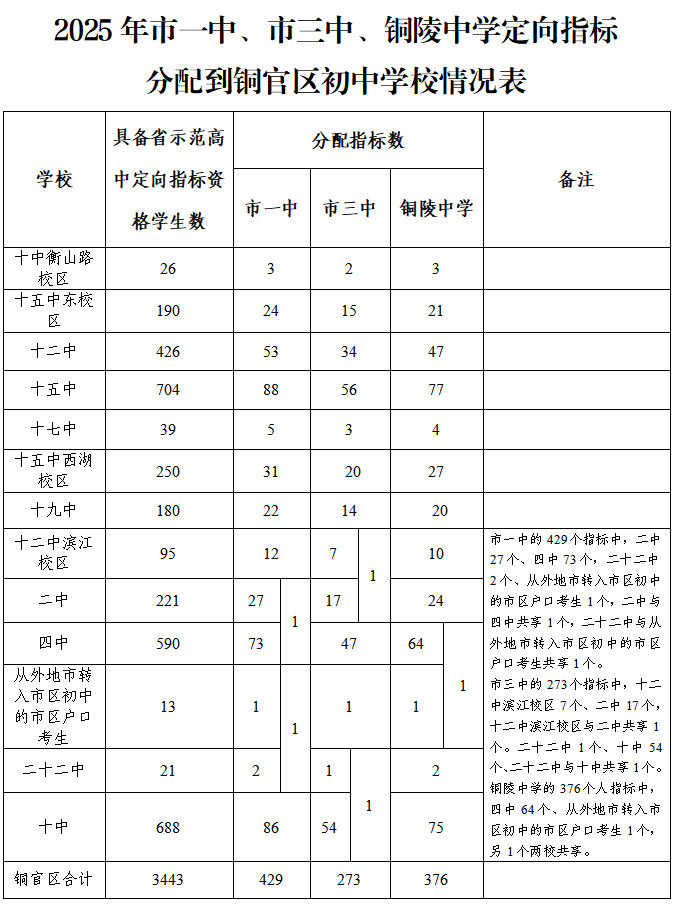 2.2025年市一中、市三中、铜陵中学定向指标分配到铜官区初中学校情况表