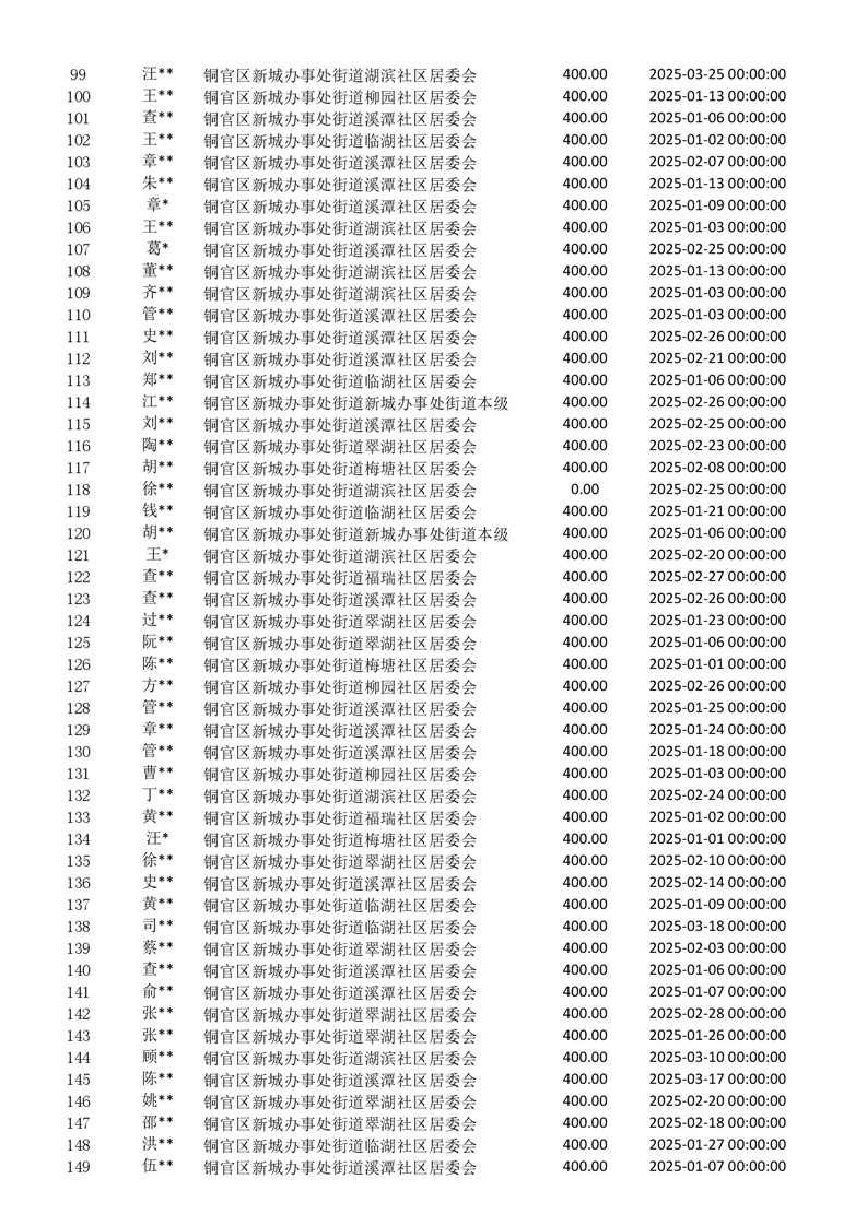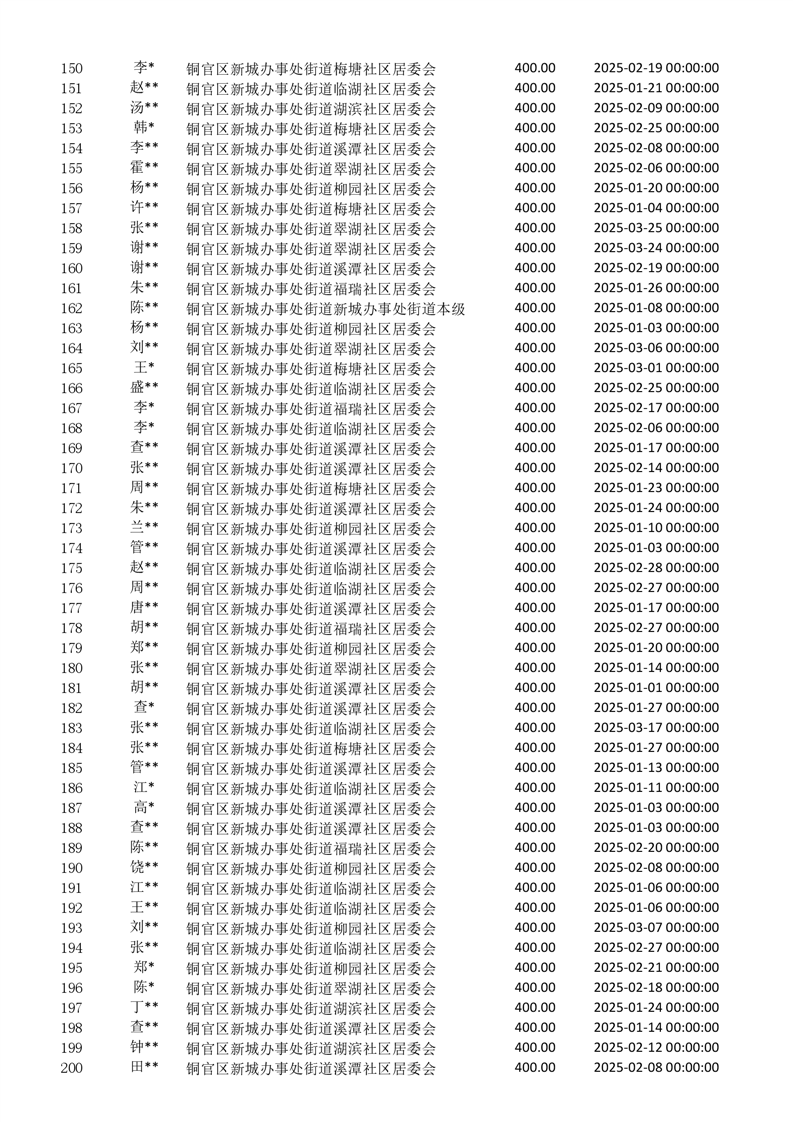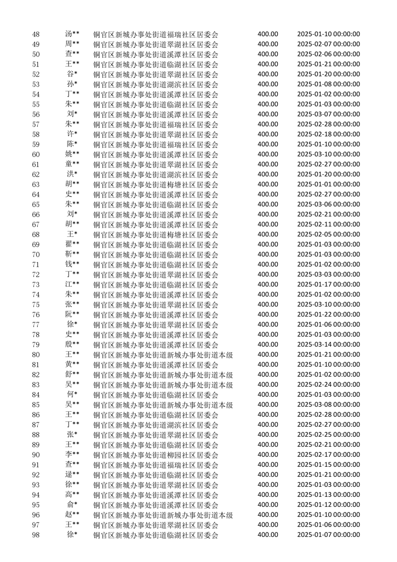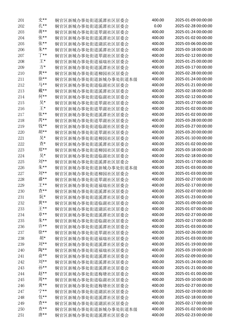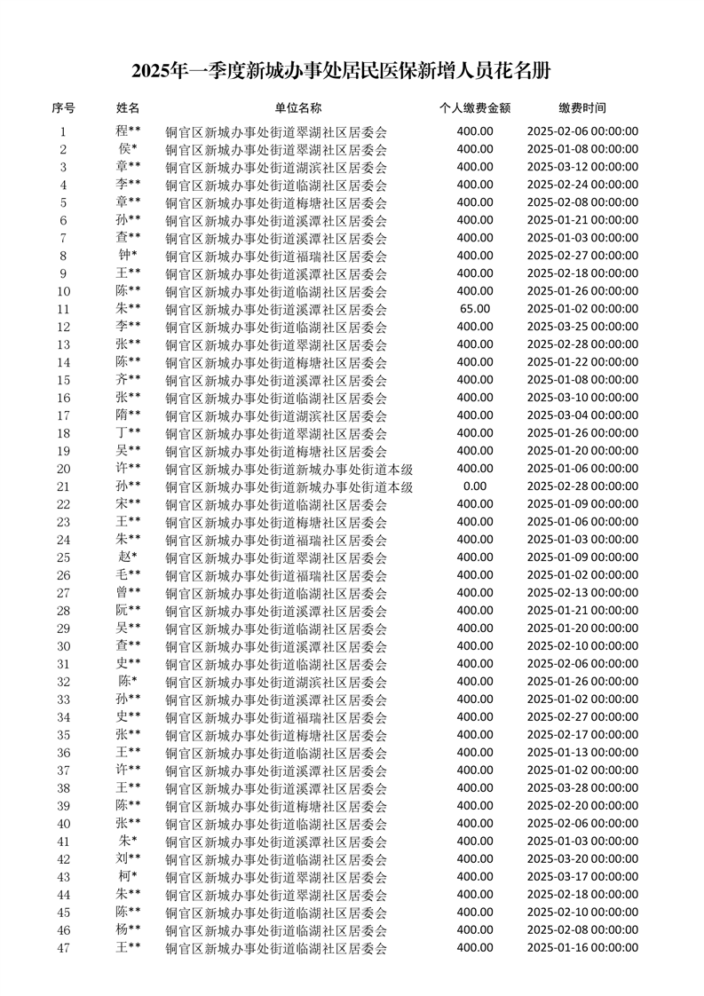 2025年一季度新城办事处居民医保新增人员花名册-铜官区人民政府