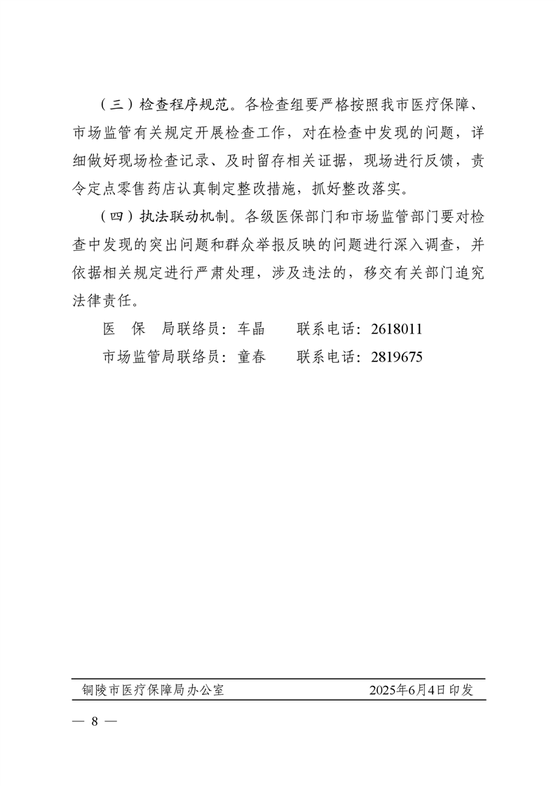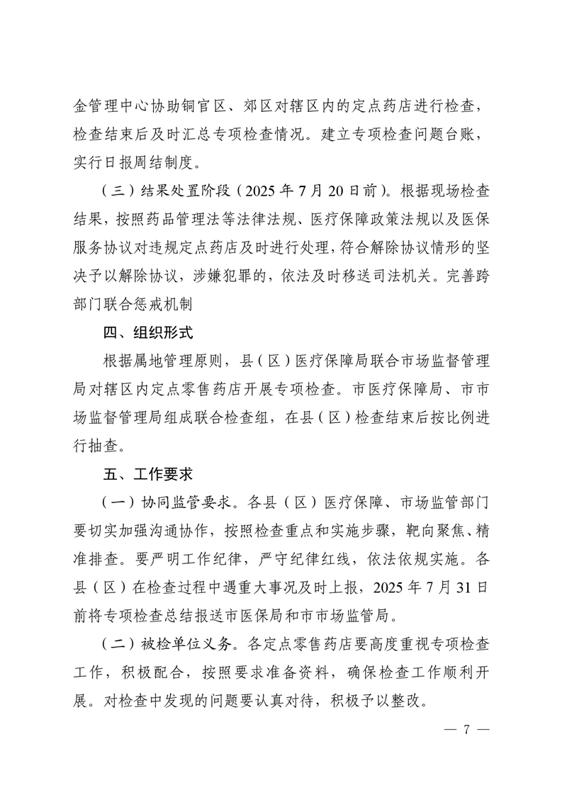 铜陵市医疗保障局 铜陵市市场监督管理局关于印发《2025年铜陵市定点零售药店专项检查实施方案》的通知