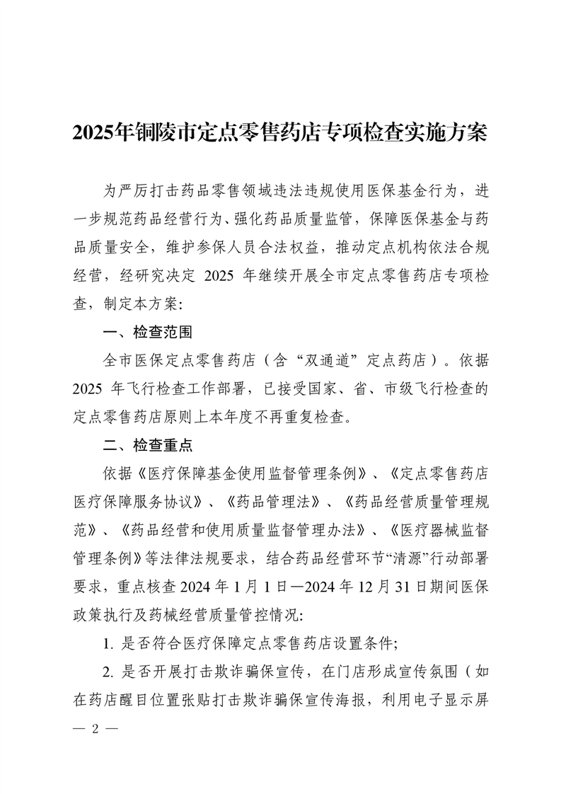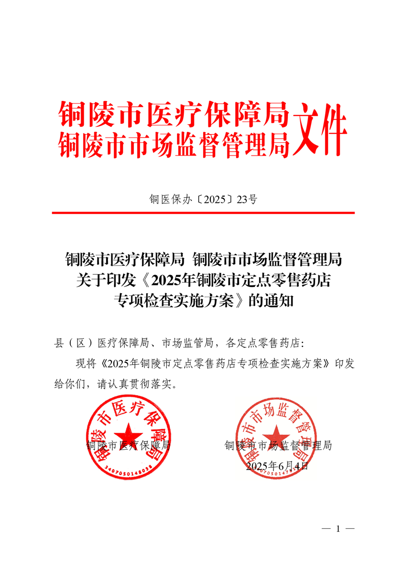 铜陵市医疗保障局 铜陵市市场监督管理局关于印发《2025年铜陵市定点零售药店专项检查实施方案》的通知-铜官区人民政府