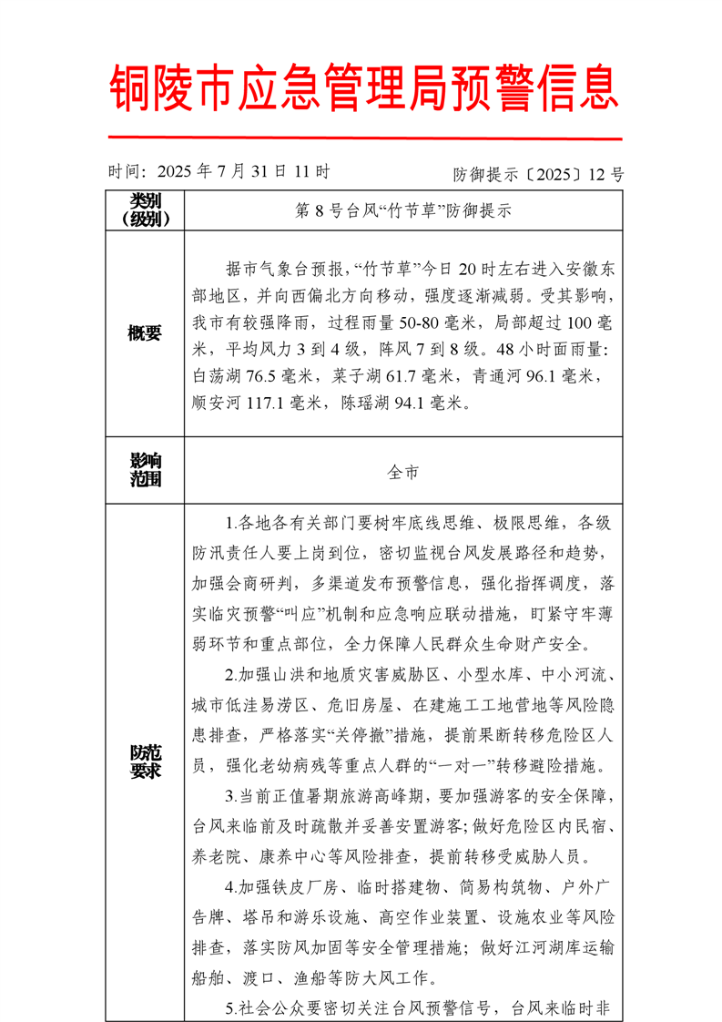 【气象灾害类】第8号台风“竹节草”防御提示及防范要求-铜官区人民政府