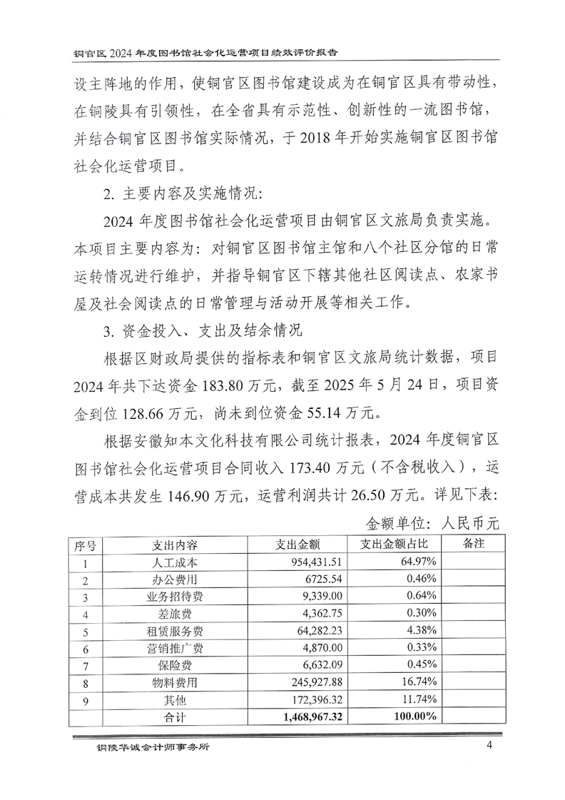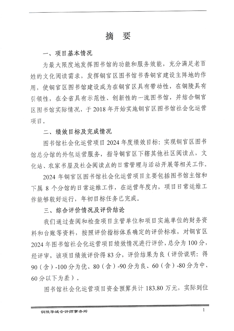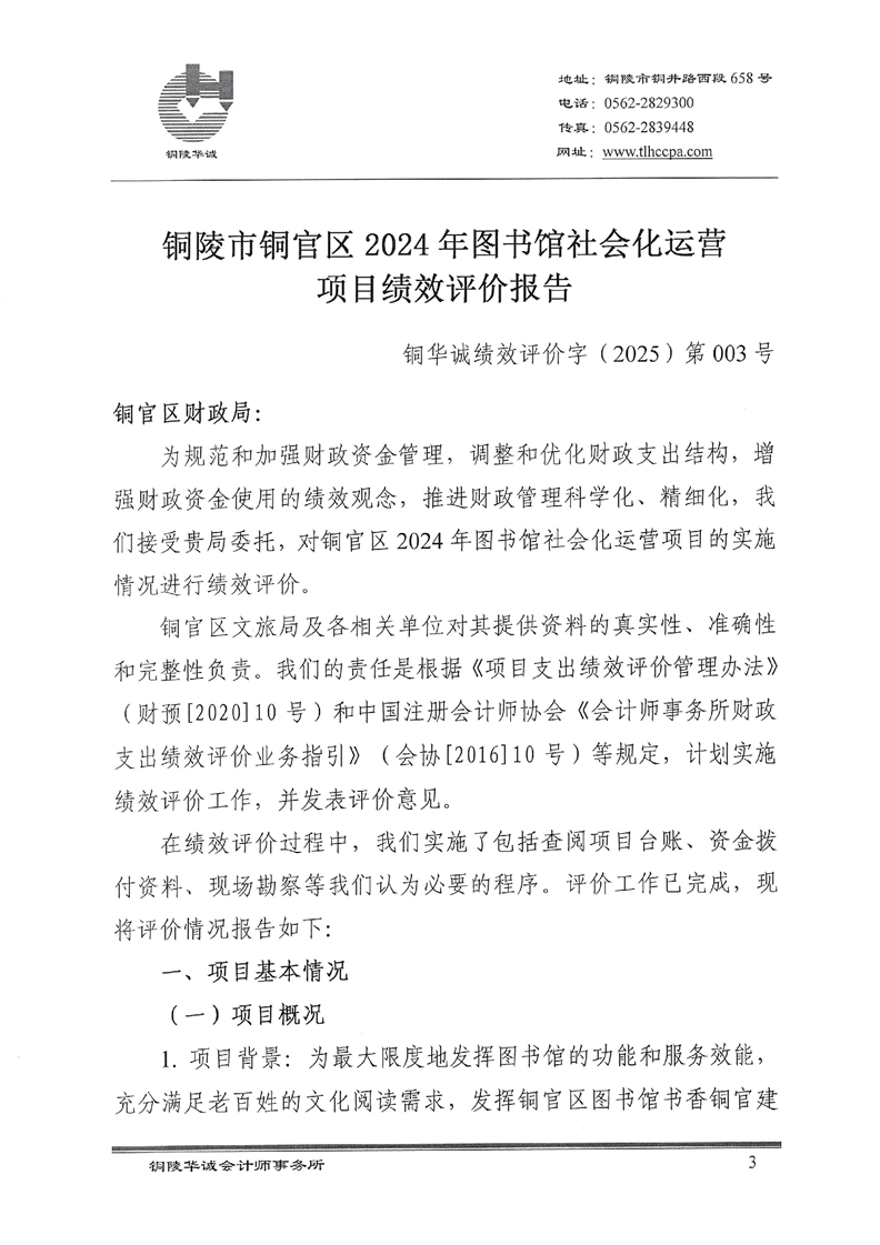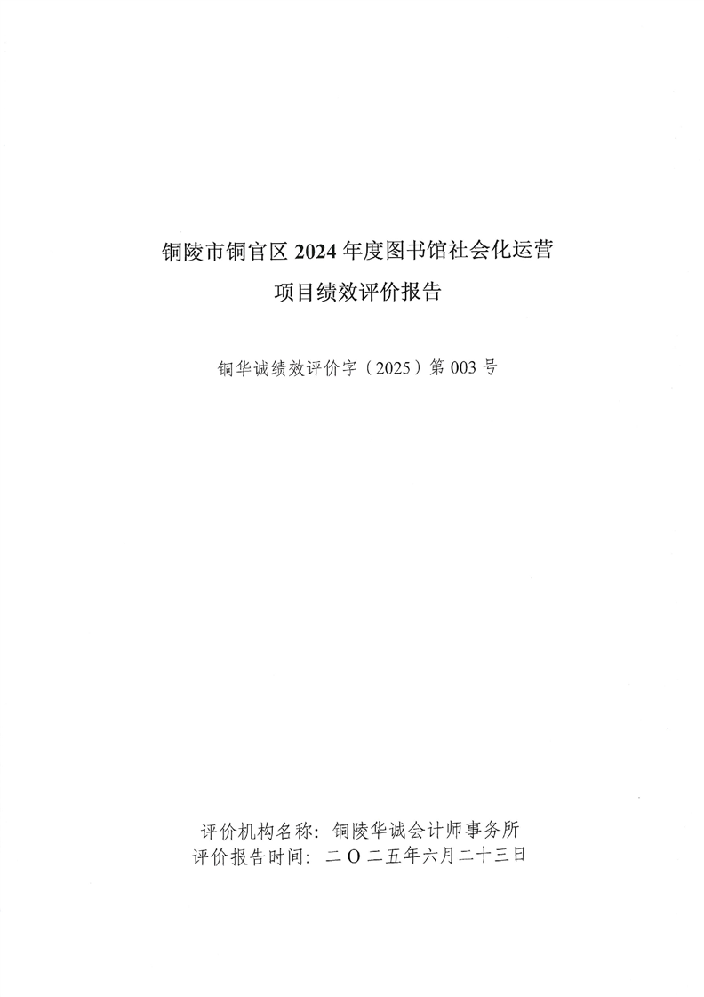 铜陵市铜官区2024年度图书馆社会化运营项目绩效评价报告-铜官区人民政府